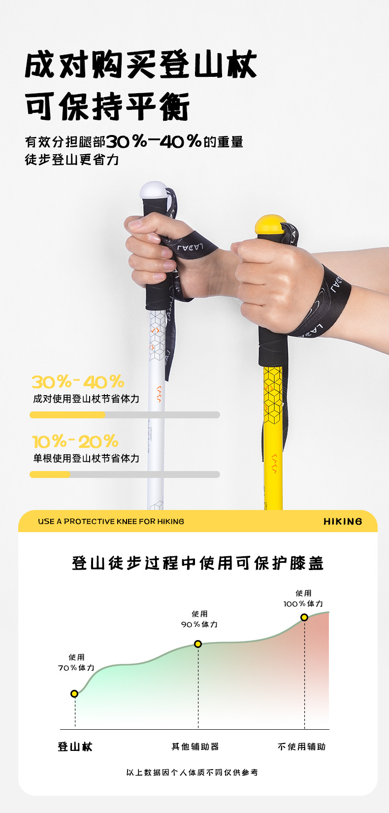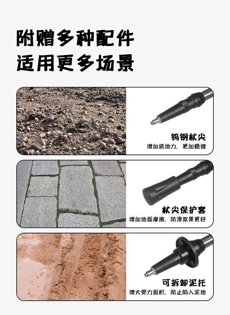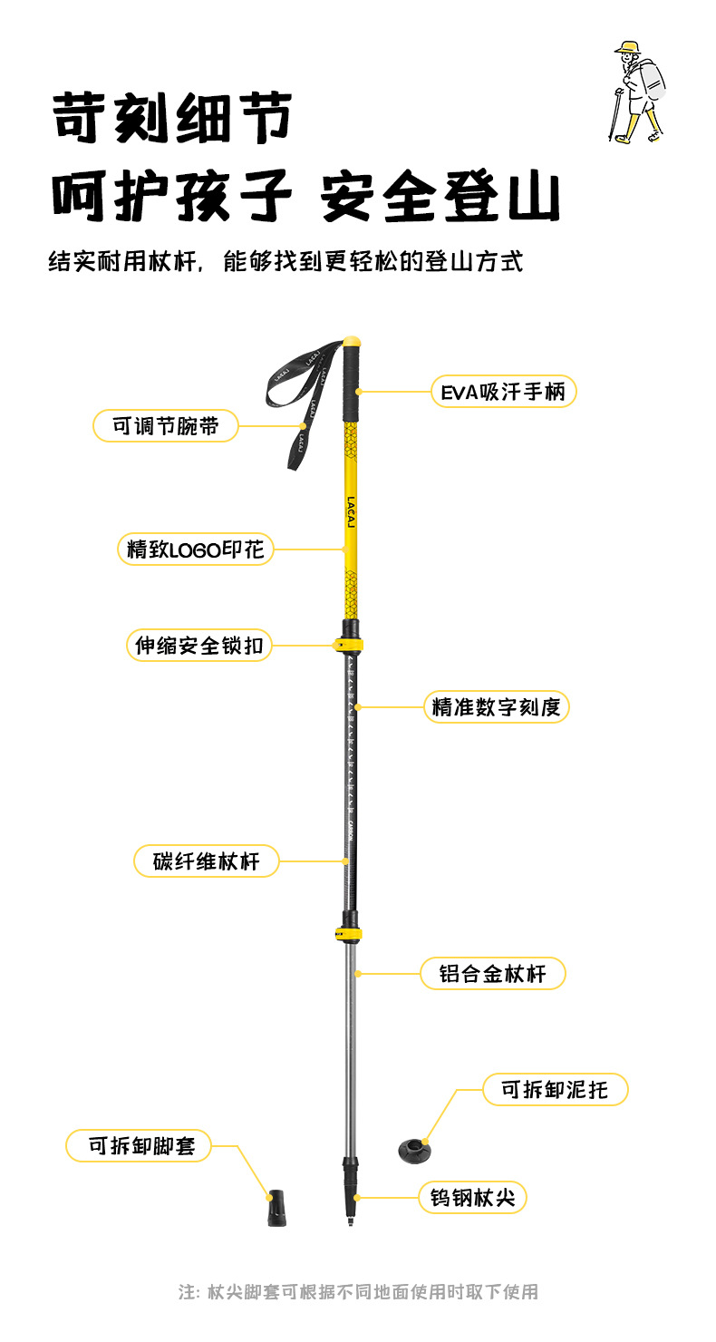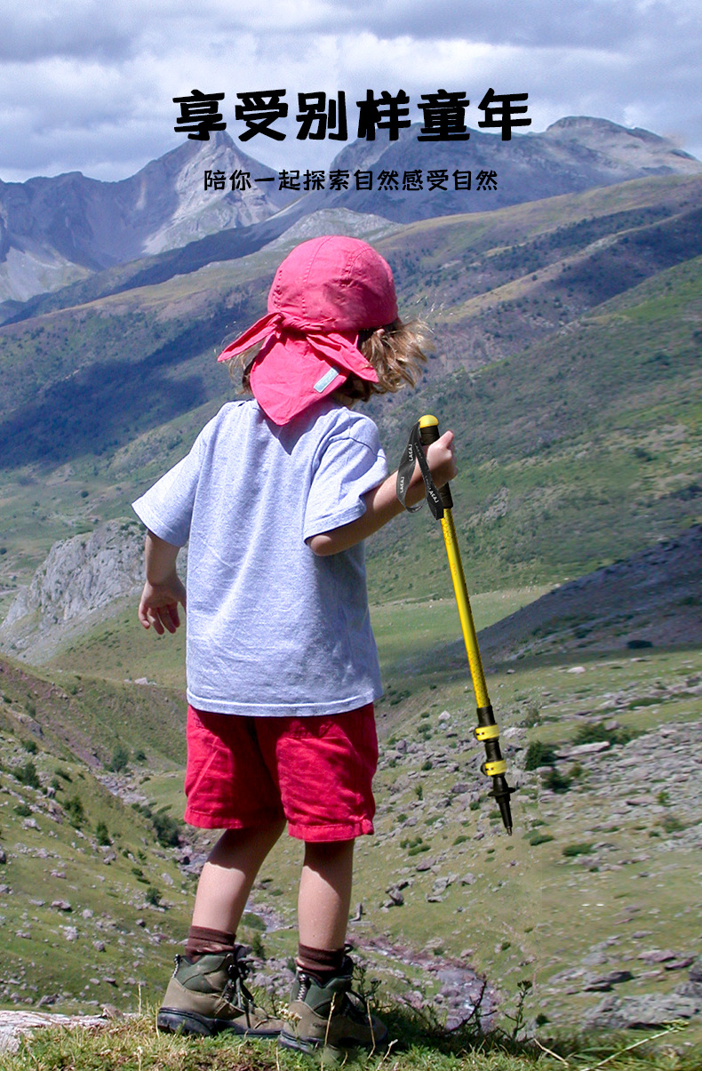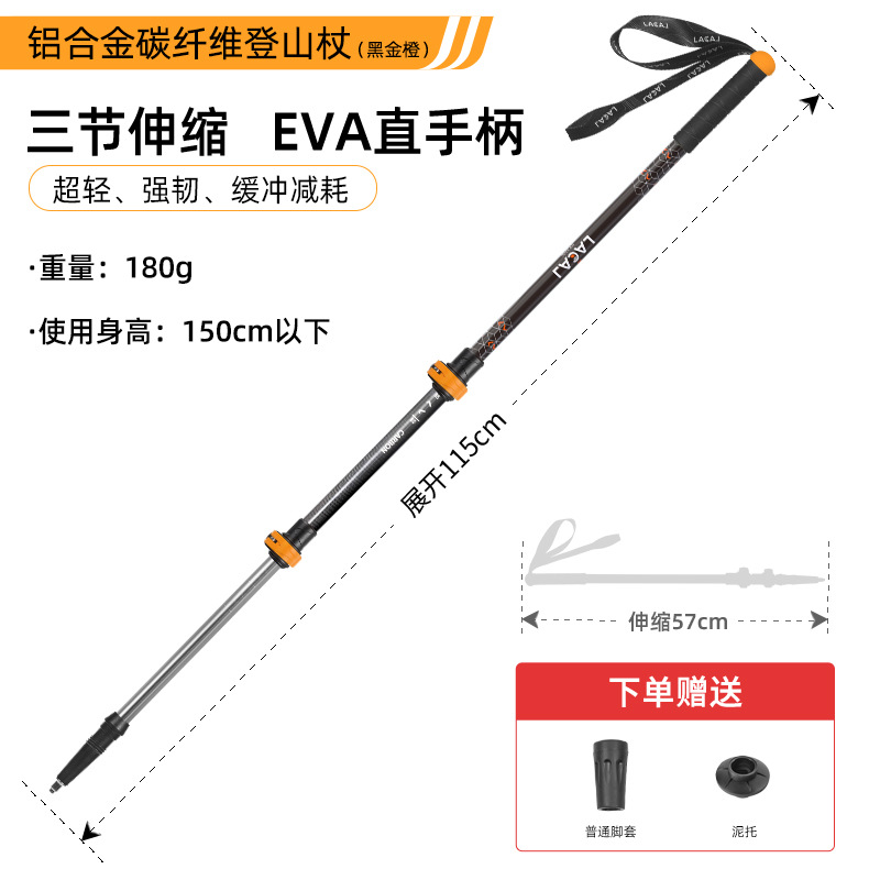 어린이 등산 스틱 초경량 외부 잠금 탄소 섬유 알루미늄 합금 3 섹션 망원경 조정 가능한 야외 하이킹 등산 장비