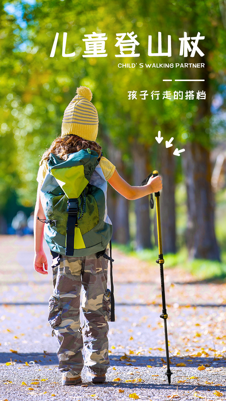 어린이 등산 스틱 초경량 외부 잠금 탄소 섬유 알루미늄 합금 3 섹션 망원경 조정 가능한 야외 하이킹 등산 장비스토어 가기