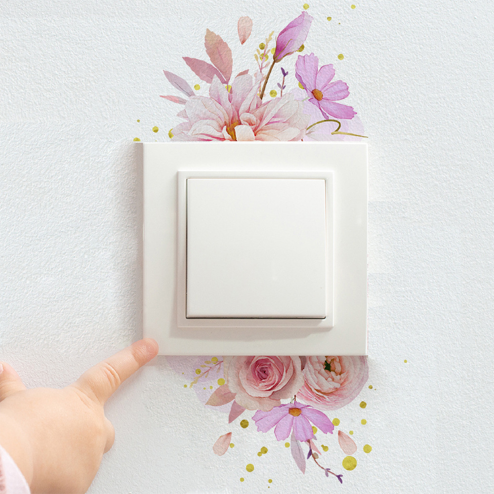 Yiyao DD151509 간단한 핑크 장미 꽃 스위치 스티커 거실 침실 스위치 장식 자체 접착 스티커