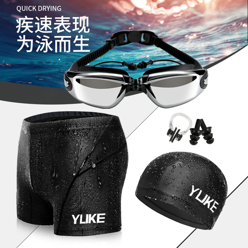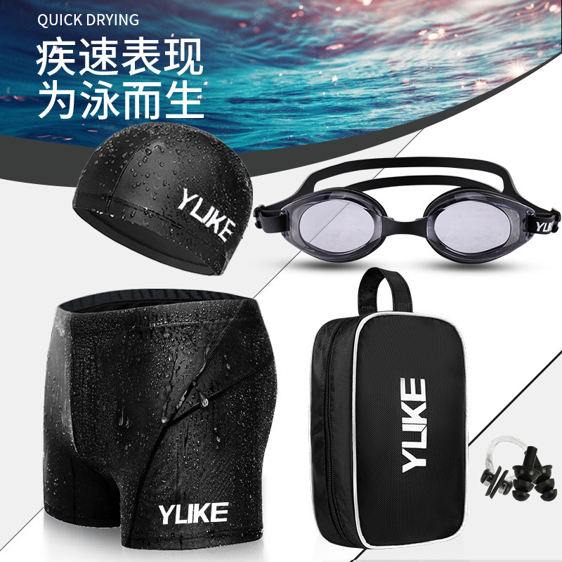 수영 트렁크 남자 수영 세트 복서 반바지 방수 빠른 건조 수영복 수영 모자 수영 따뜻한 보호 럭키 회사