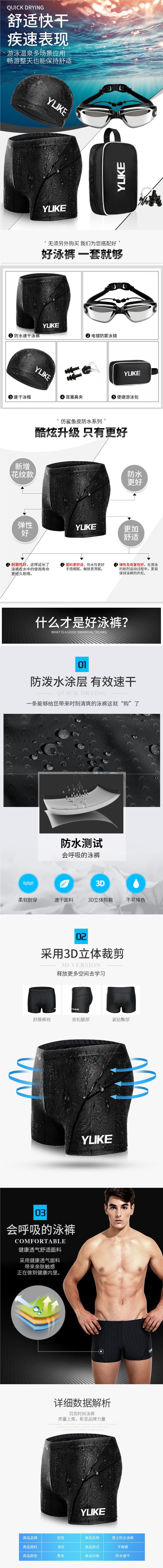 • 5피스 수영 트렁크 세트(검은색 전기도금 및 일체형 귀마개)