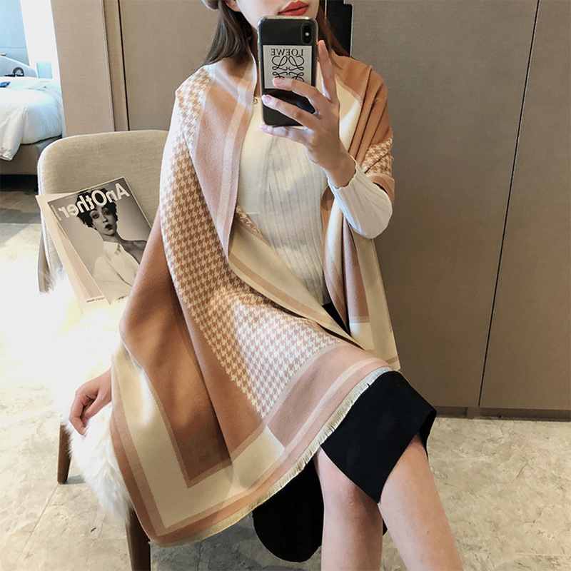 여름 사무실 에어컨 목도리 여성의 가을 겨울 하운드 스카프 한국식 H-글자 두꺼운 따뜻한 모방 캐시미어 스카프