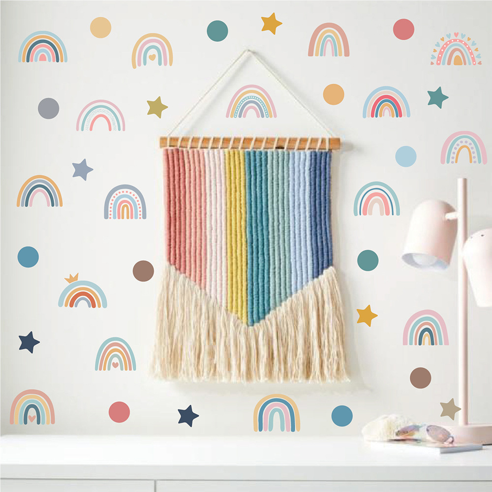 아마존 레인보우 자기 접착 벽 스티커 보헤미안 스타 폴카 도트 어린이 방 빈티지 침실 장식 배경 벽 스티커