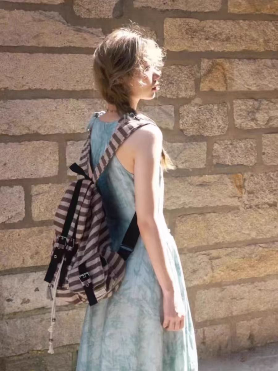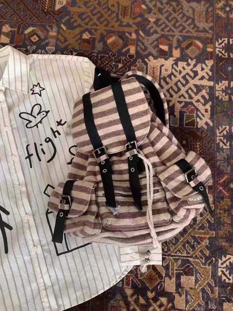 스트라이프 가방 여성용 신상 대용량 캐주얼 여성 백팩 한국 레트로 체크무늬 백팩 책가방