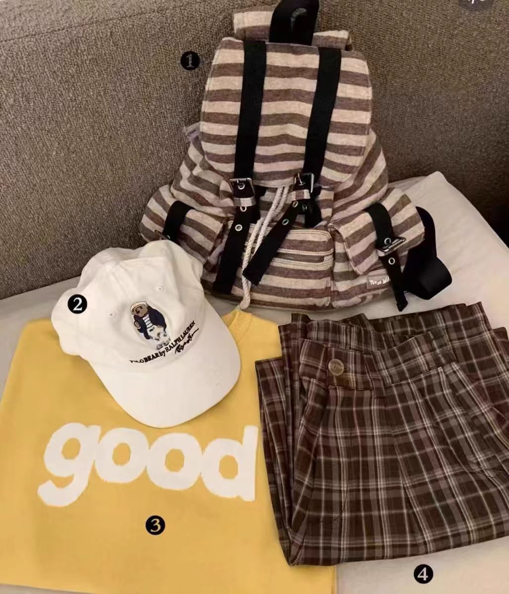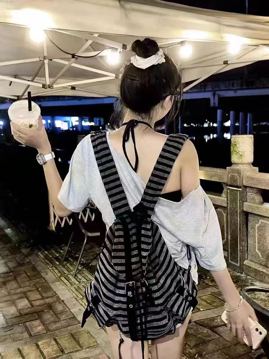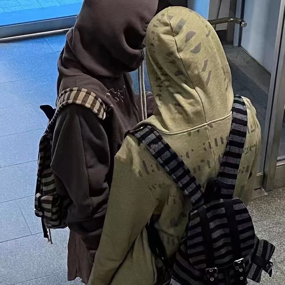 스트라이프 가방 여성용 신상 대용량 캐주얼 여성 백팩 한국 레트로 체크무늬 백팩 책가방스토어 가기
