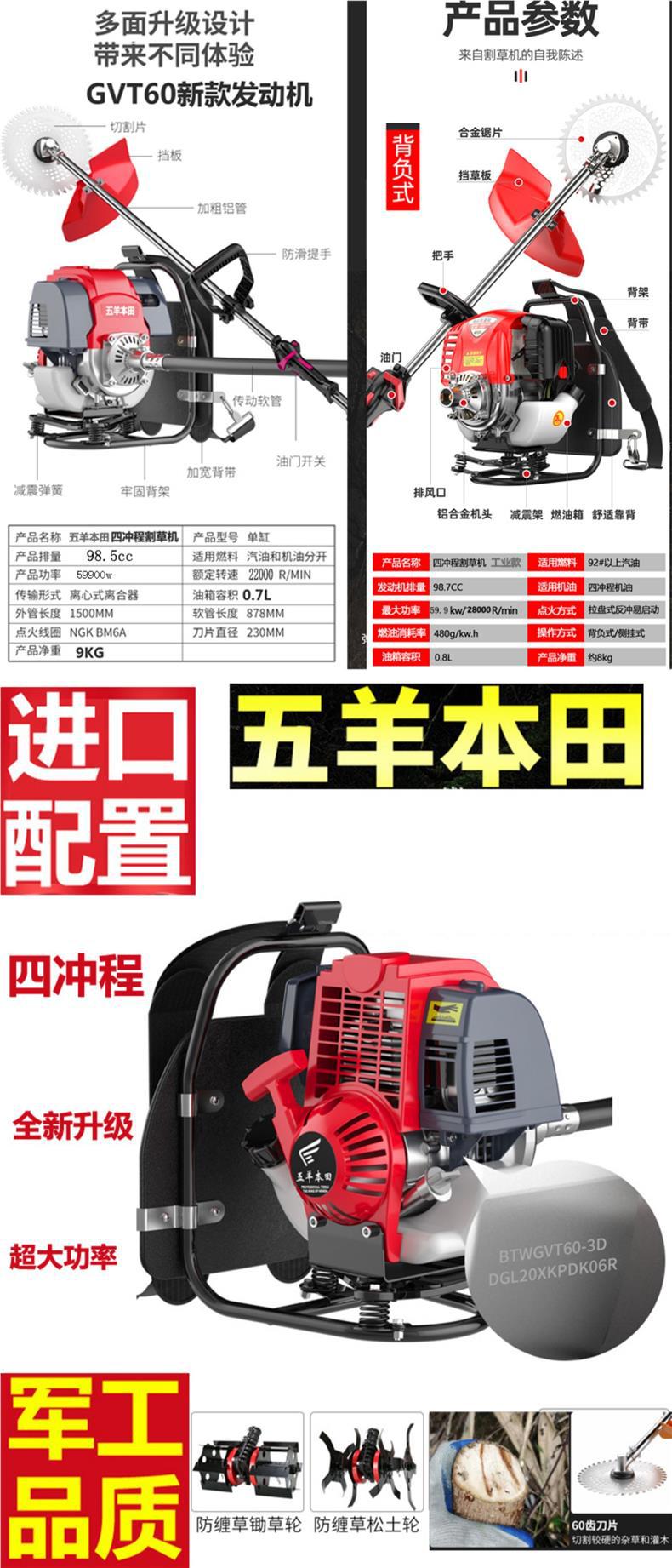 우양 혼다 배낭 가솔린 잔디 깎는 기계 작은 가정용 다기능 잔디 깎는 기계 제초 소나무 토양 제초 유물