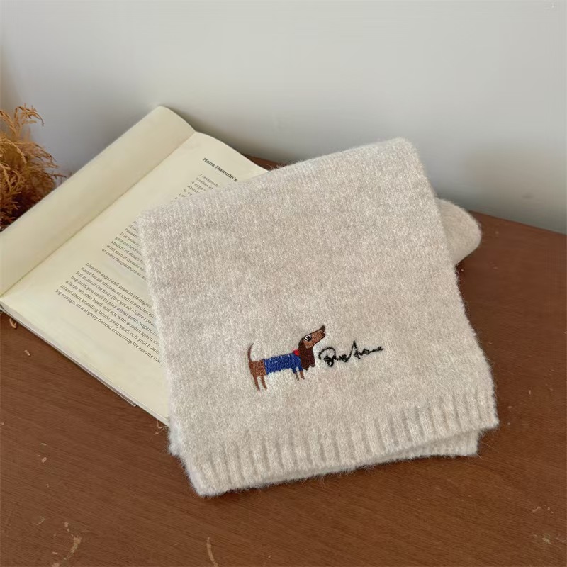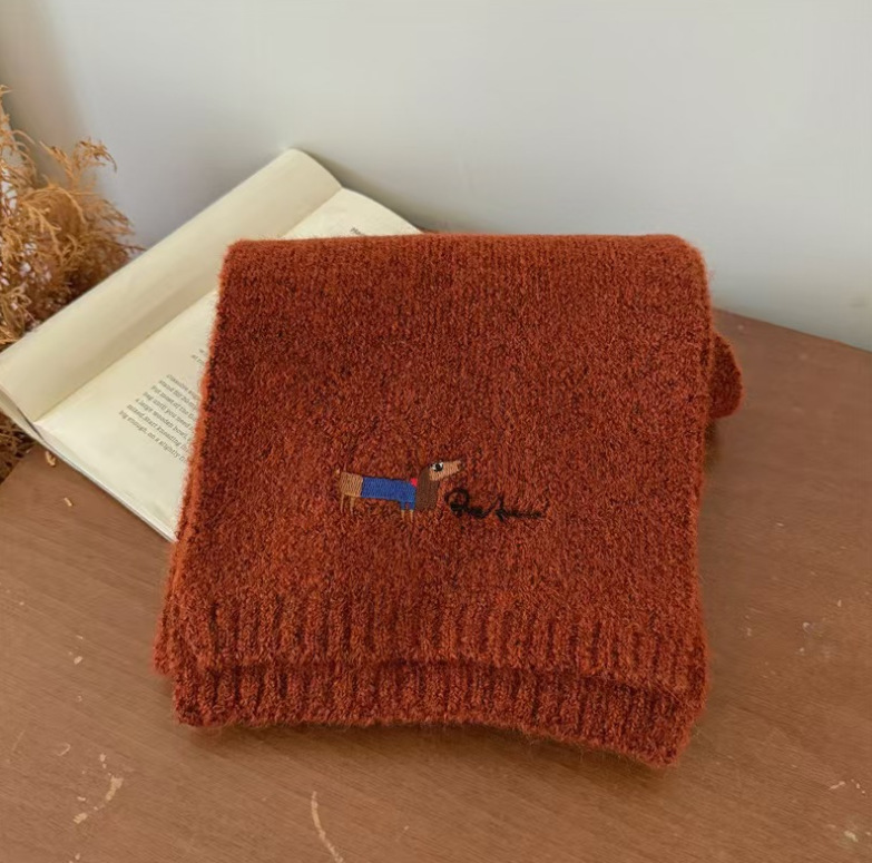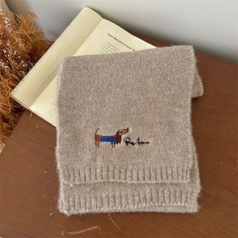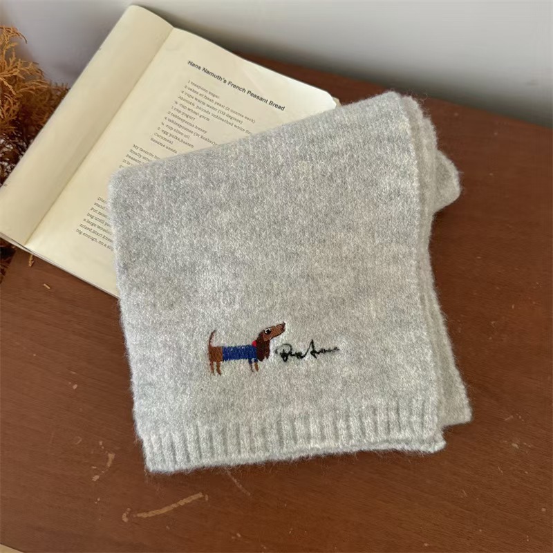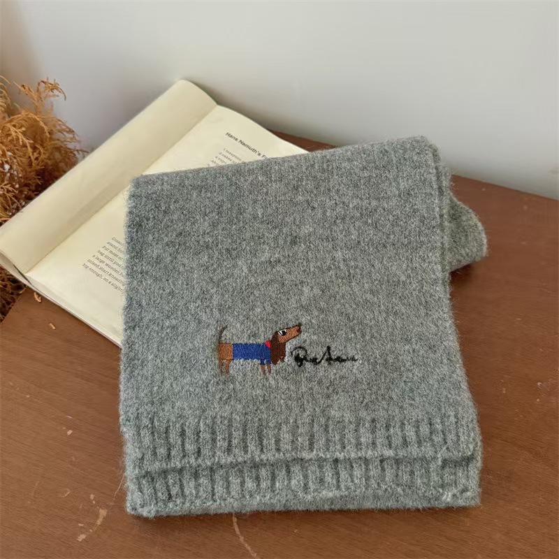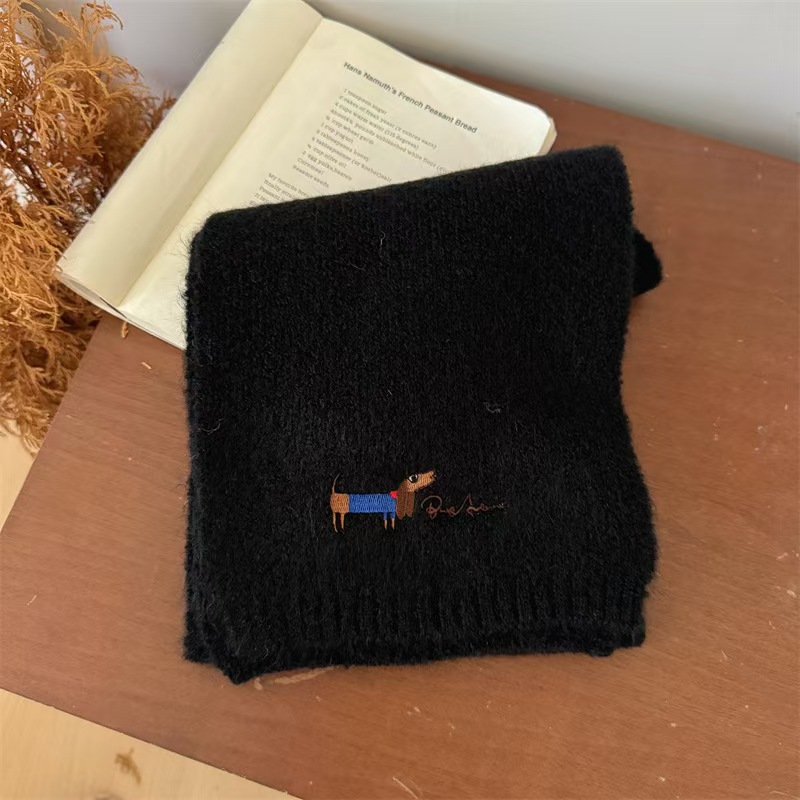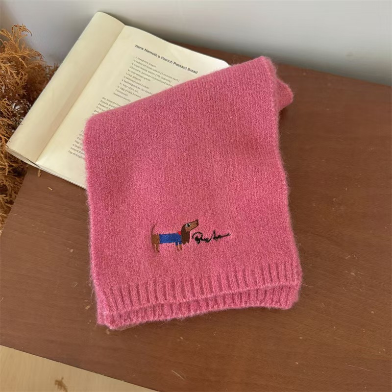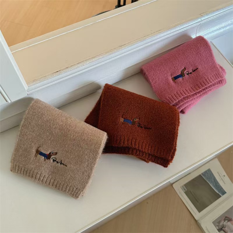 원제조사 한국 자수 강아지 모직 스카프 어린이용 단색 니트 스카프 가을 겨울 아기 야외용