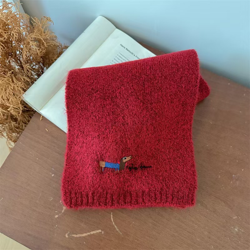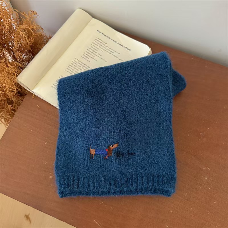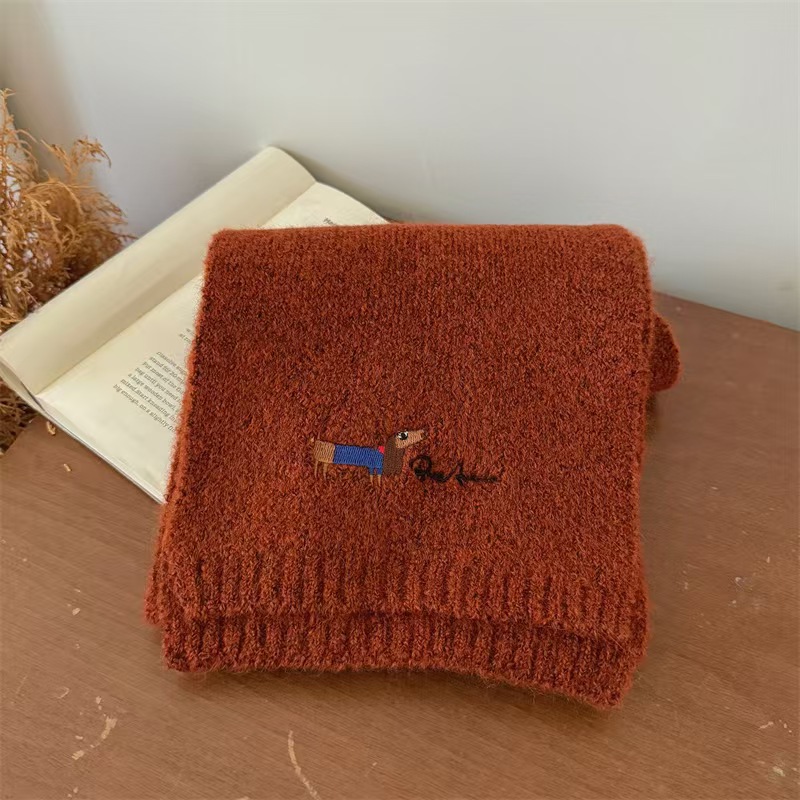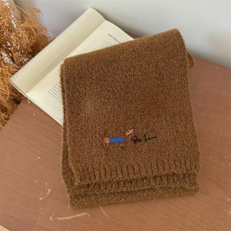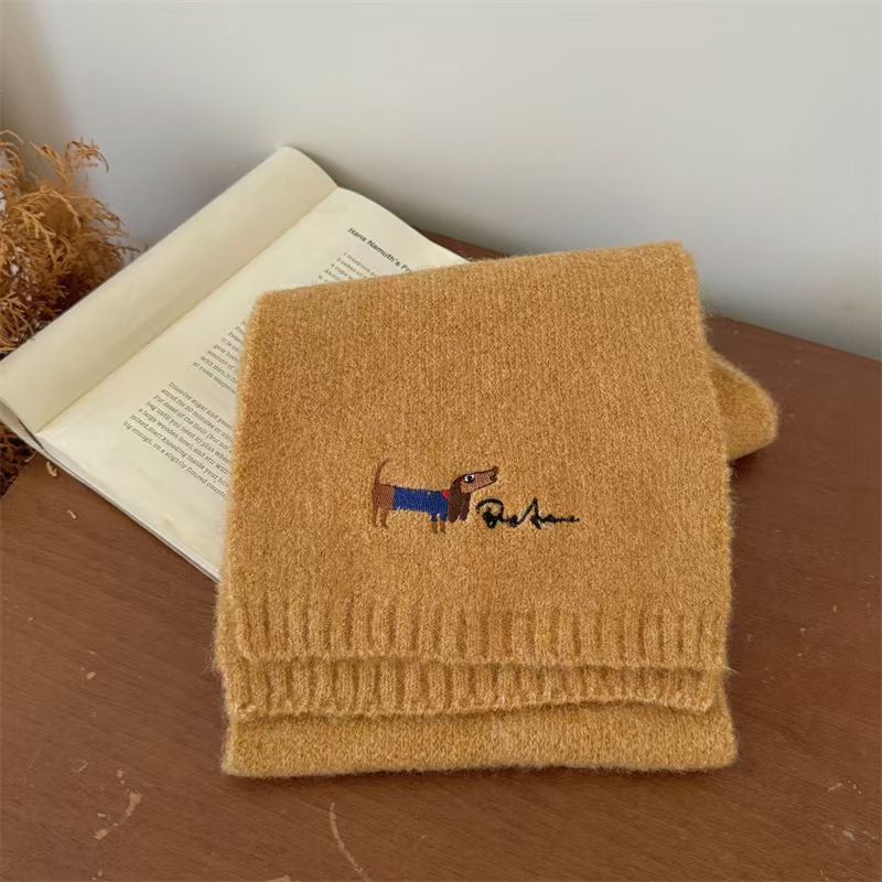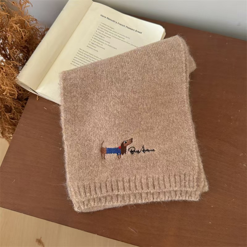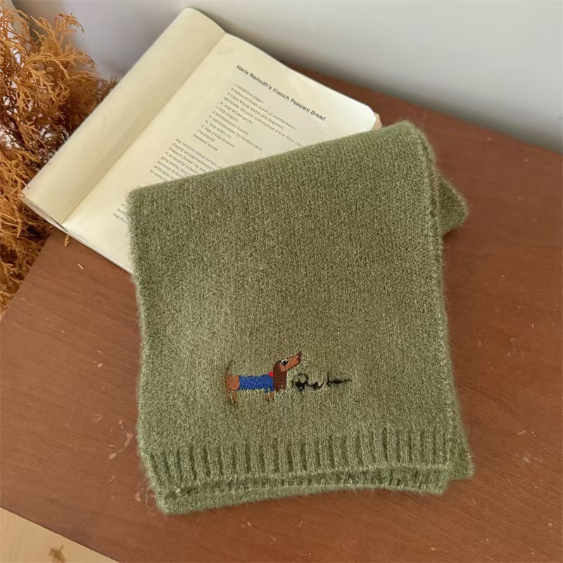 원제조사 한국 자수 강아지 모직 스카프 어린이용 단색 니트 스카프 가을 겨울 아기 야외용