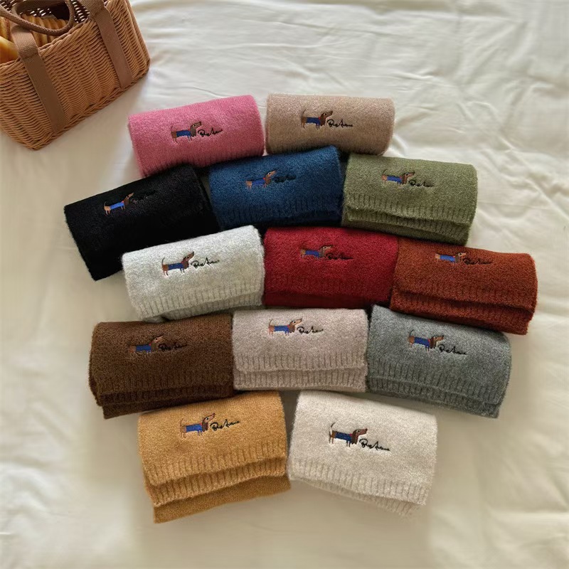 원제조사 한국 자수 강아지 모직 스카프 어린이용 단색 니트 스카프 가을 겨울 아기 야외용스토어 가기