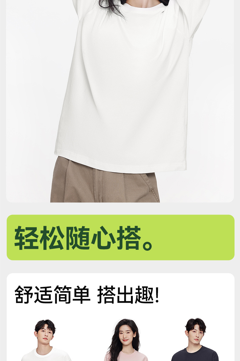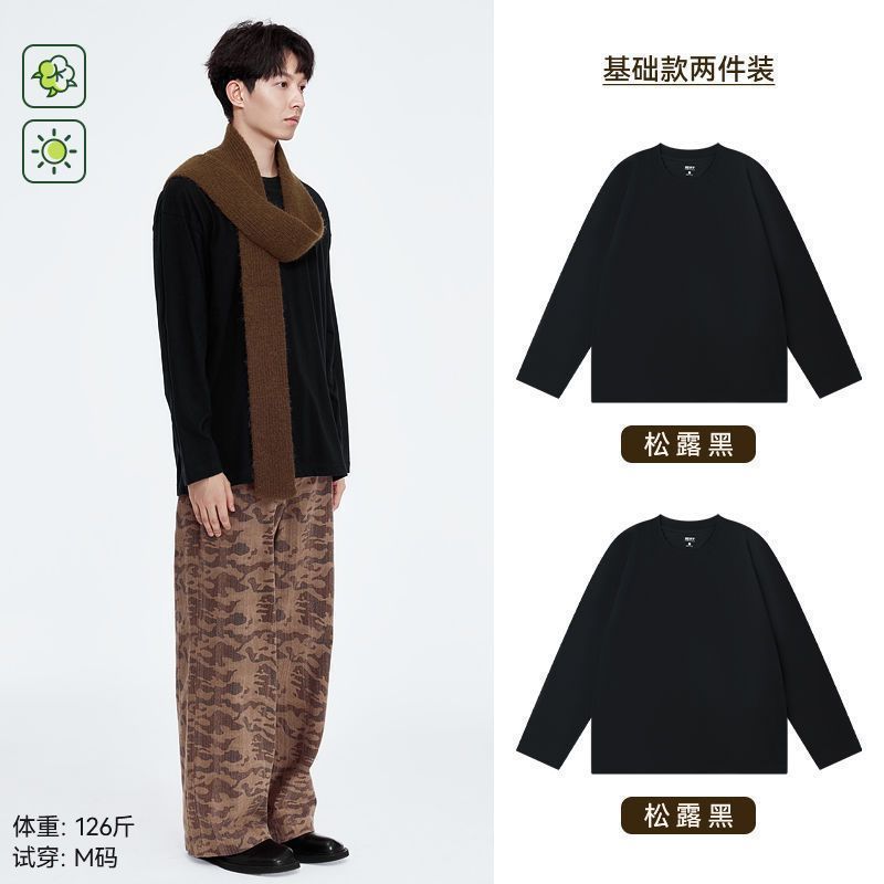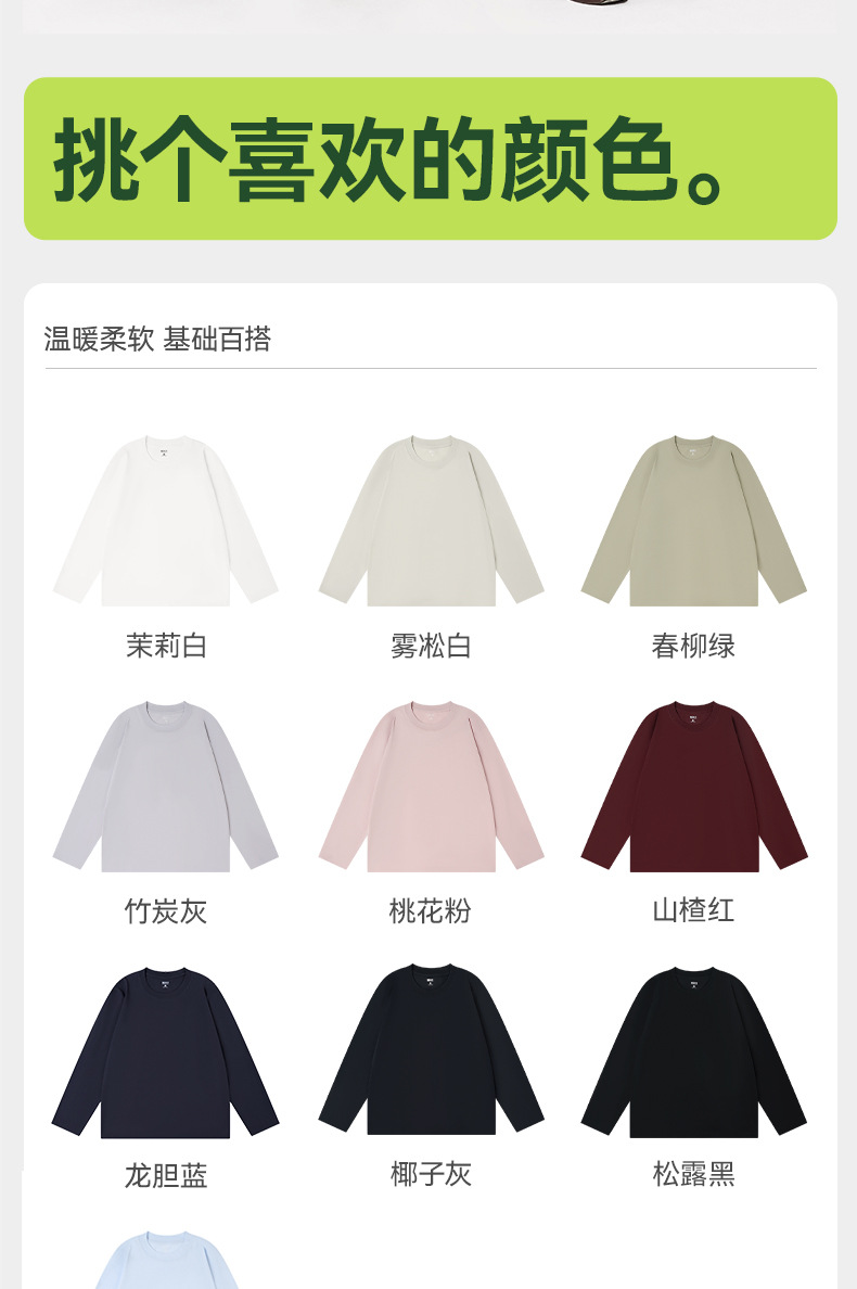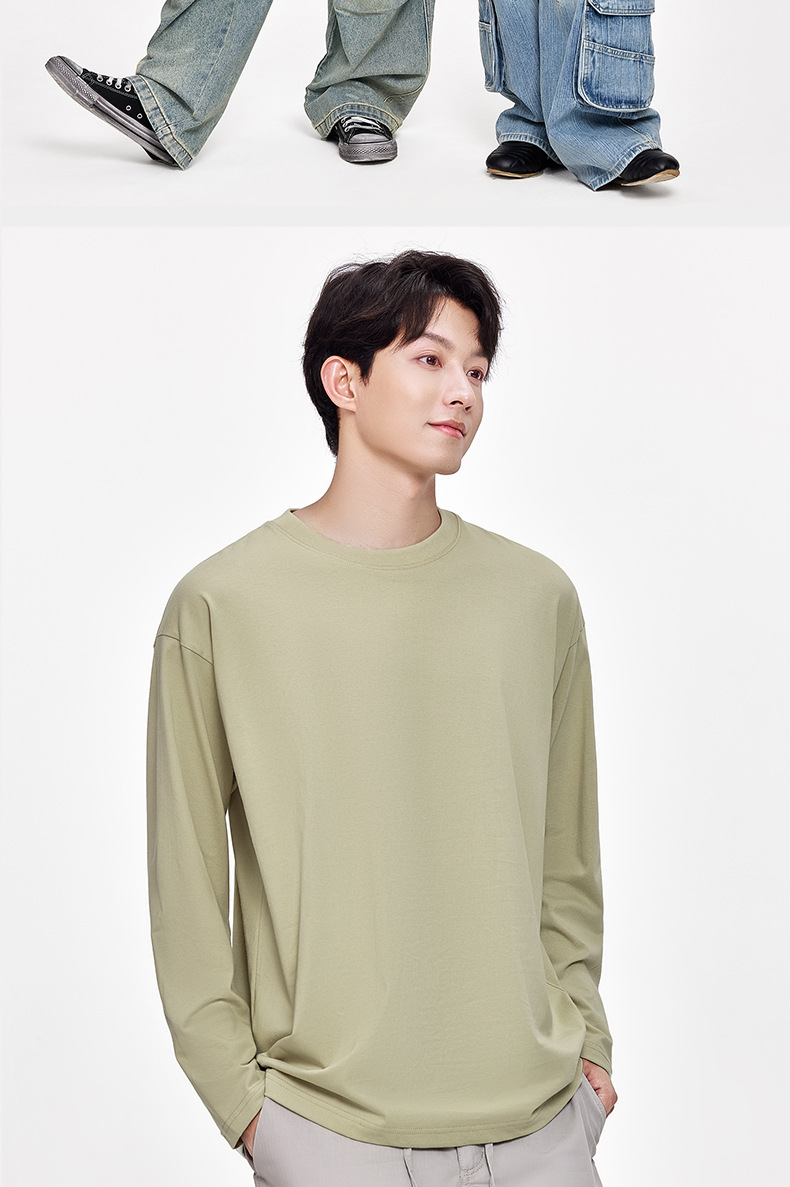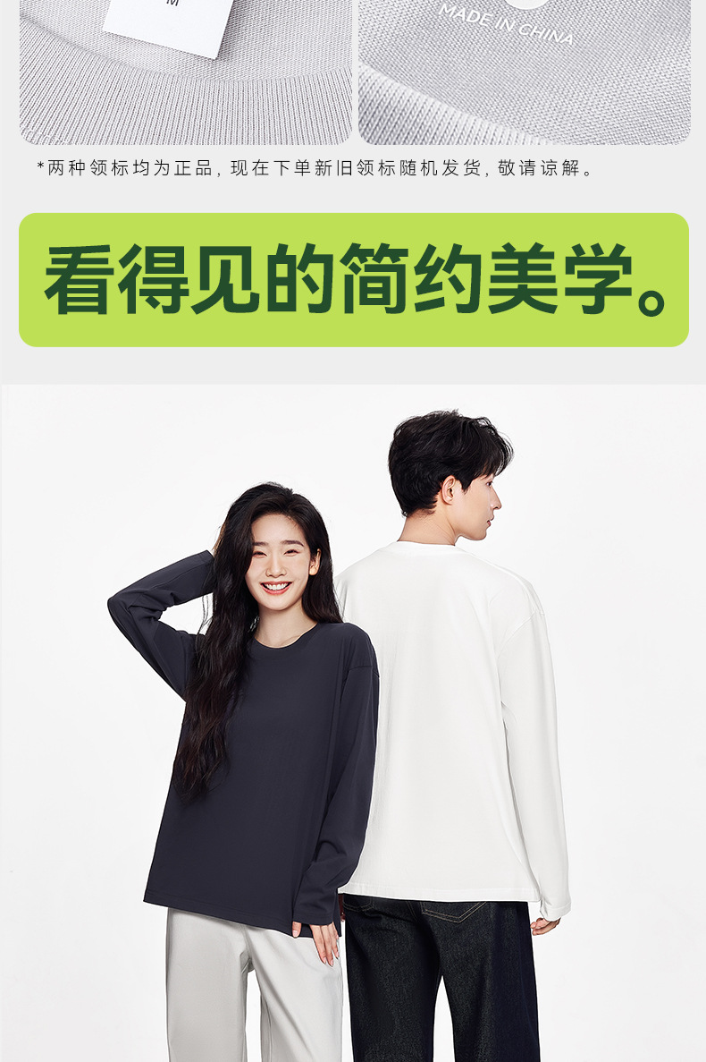 "면화의 미학" 중량순면 긴팔 티셔츠 남자 초가을 단색 느슨한 크루 넥 탑 남녀 베이스 셔츠스토어 가기