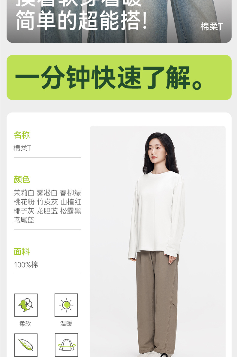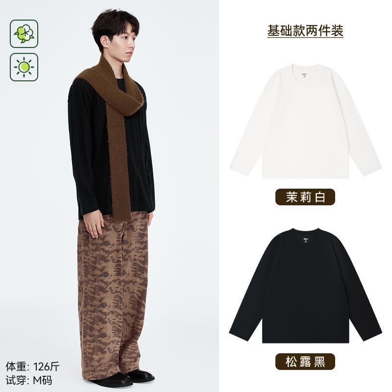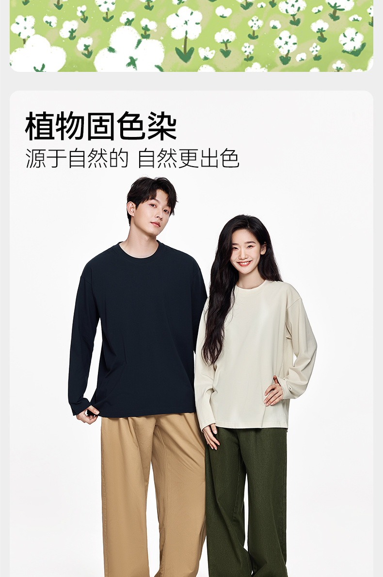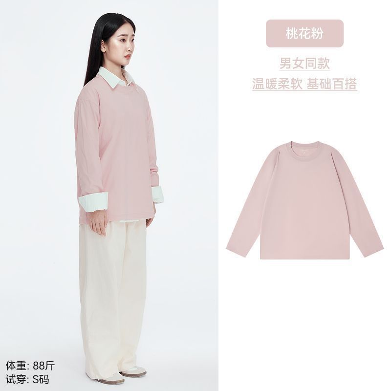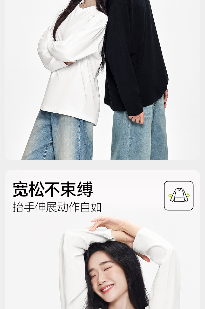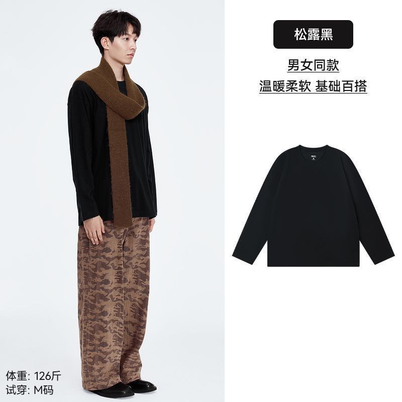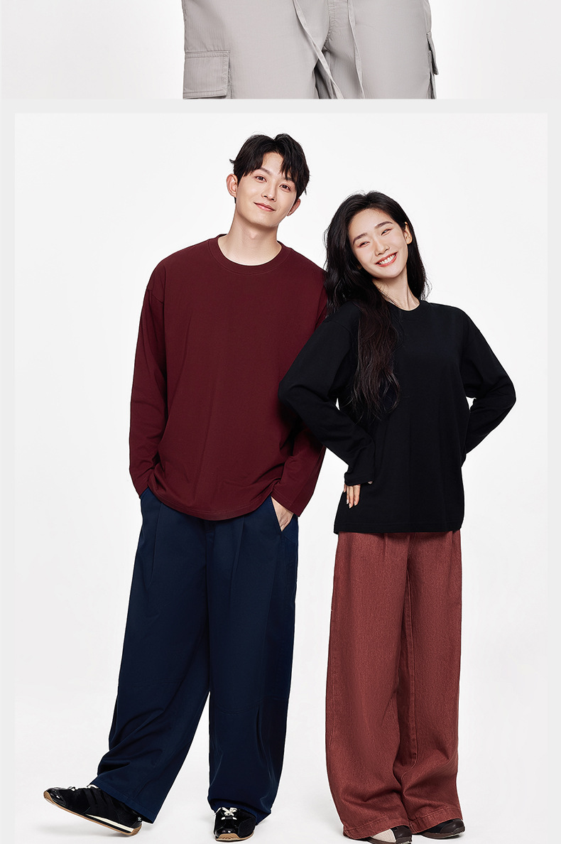 "면화의 미학" 중량순면 긴팔 티셔츠 남자 초가을 단색 느슨한 크루 넥 탑 남녀 베이스 셔츠