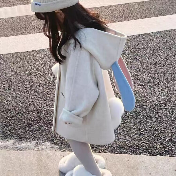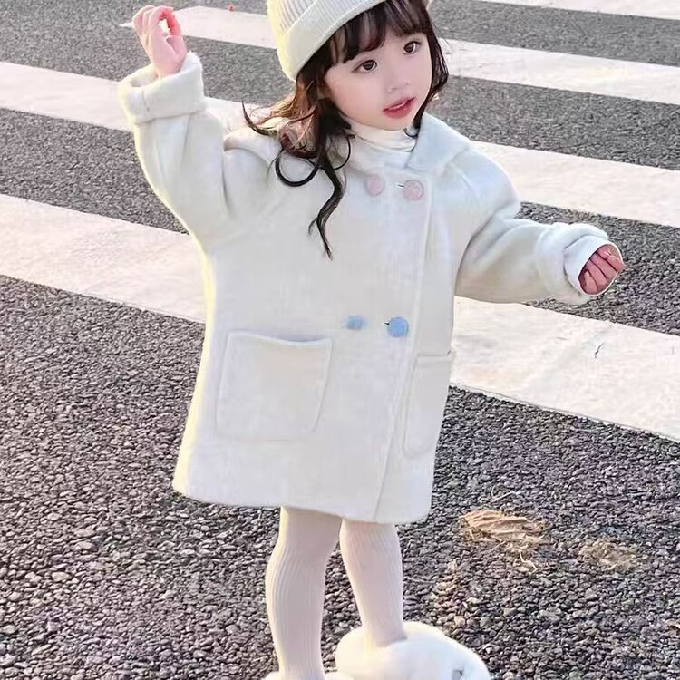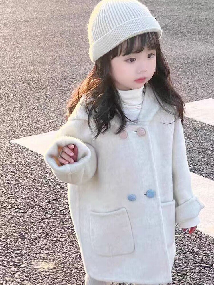소녀 모직 코트 기모 2024 가을 겨울 새로운 귀여운 아기 소녀 서양식 한국 어린이 모직 코트스토어 가기