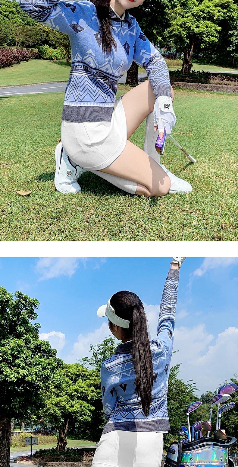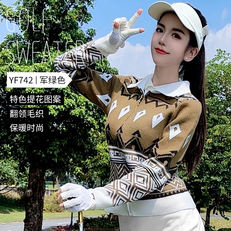 PGM 골프 의류 여성 울 옷깃 코트 따뜻한 패션 스웨터 탑 힙합 스커트 세트스토어 가기