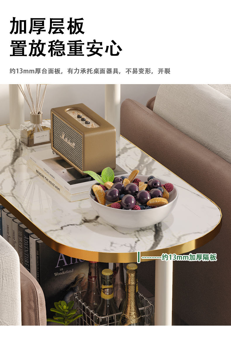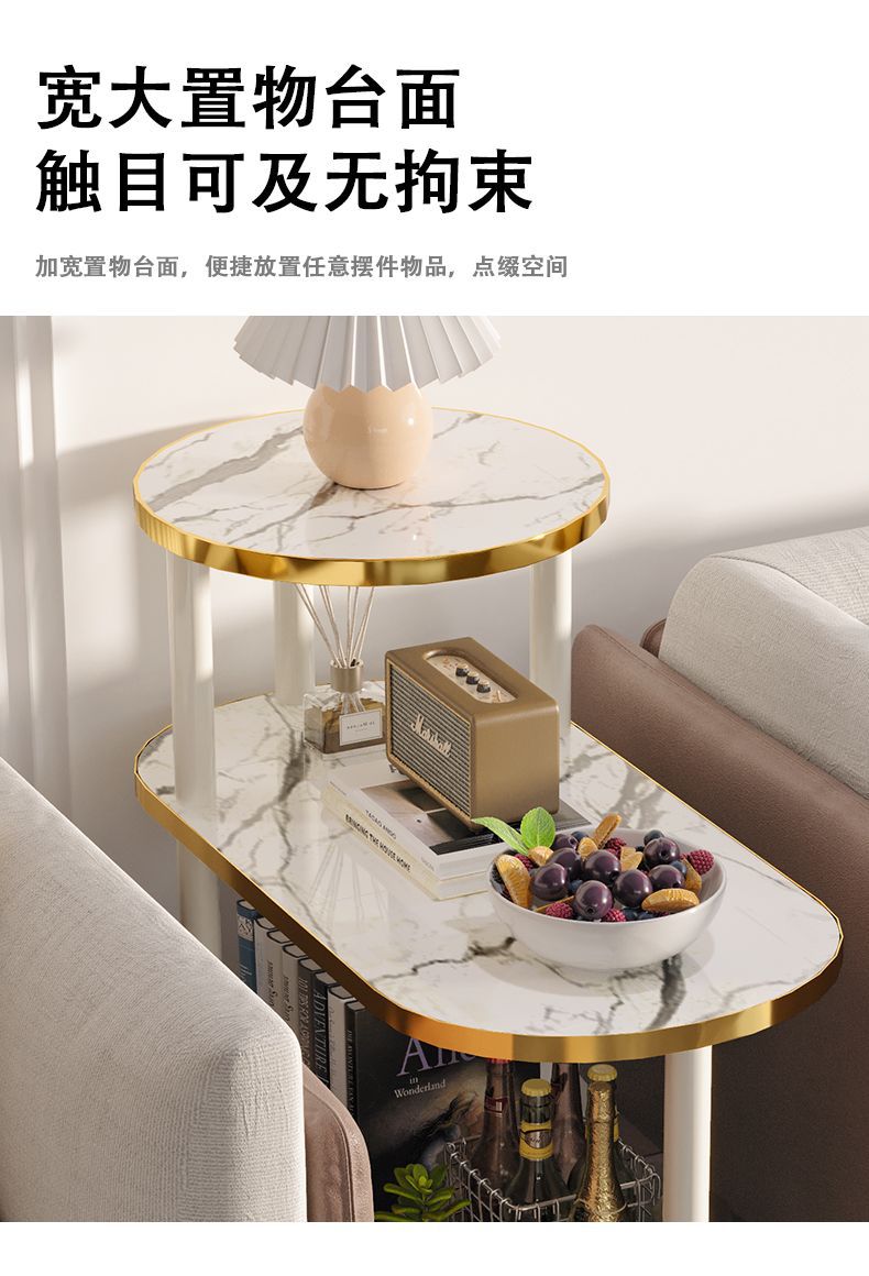 침실 이동식 소파 사이드 테이블 커피 테이블 작은 아파트 암판 대리석 가장자리 장식 거실 솔리드 우드 스토리지 랙
