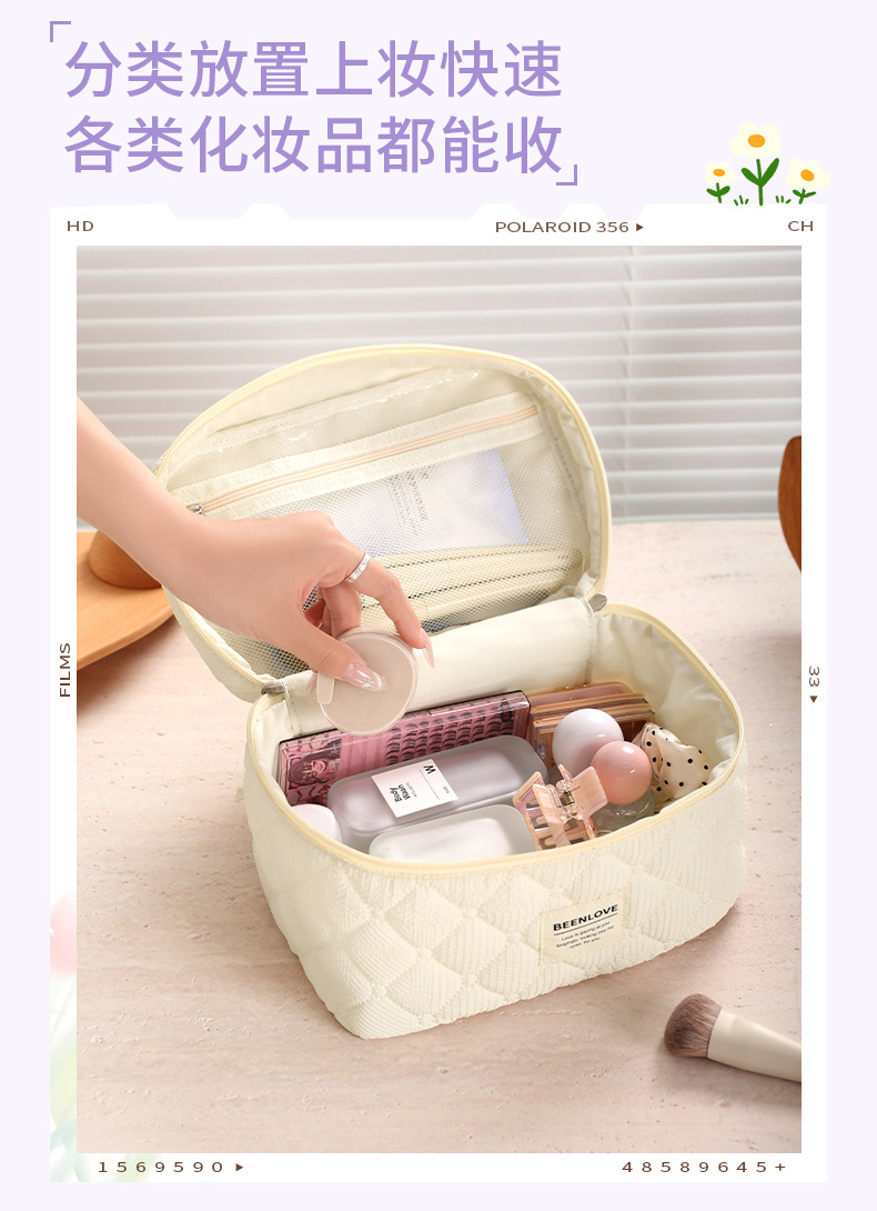 • 컬러풀 오픈 뚜껑 화장품 가방 베이지
