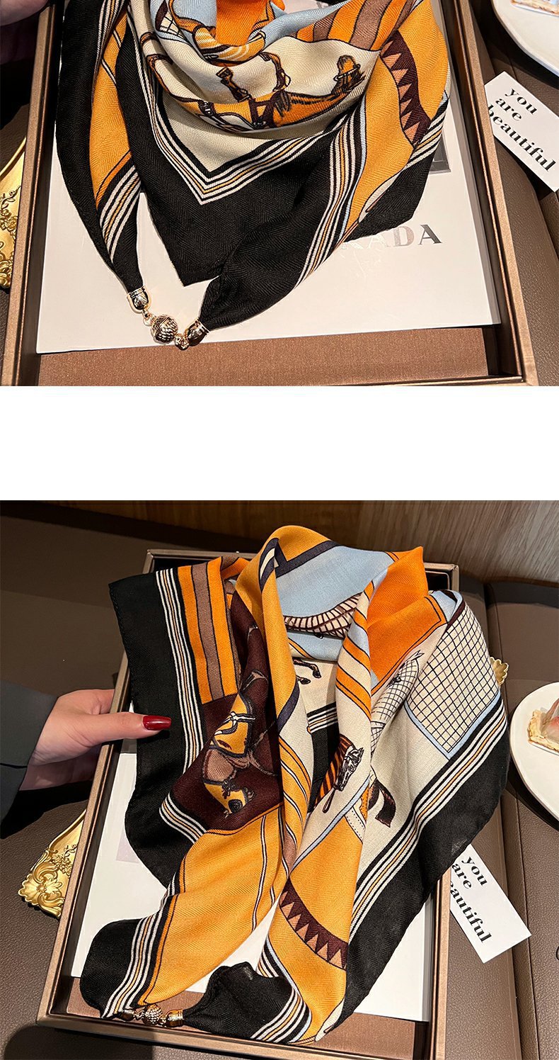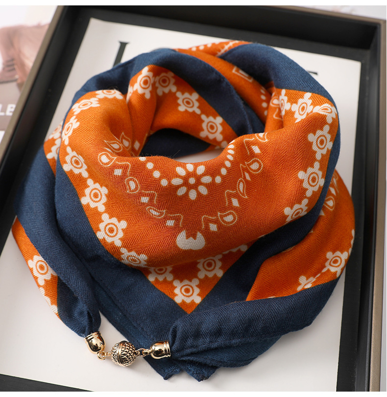 2024 새로운 스타일 따뜻한 광장 스카프 마그네틱 버클 삼각형 실크 스카프 면화 스카프 여성의 봄 가을과 겨울 서양 스타일 스카프 우아한 올 매치