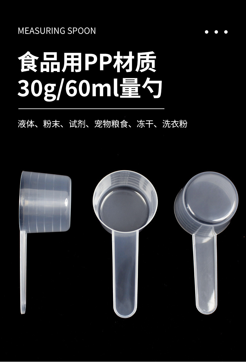 공장 도매 높은 투자율 pp 스푼 30g 60 ml 파우더 스푼 스푼 액체 플라스틱 측정 숟가락 단백질 파우더 스푼