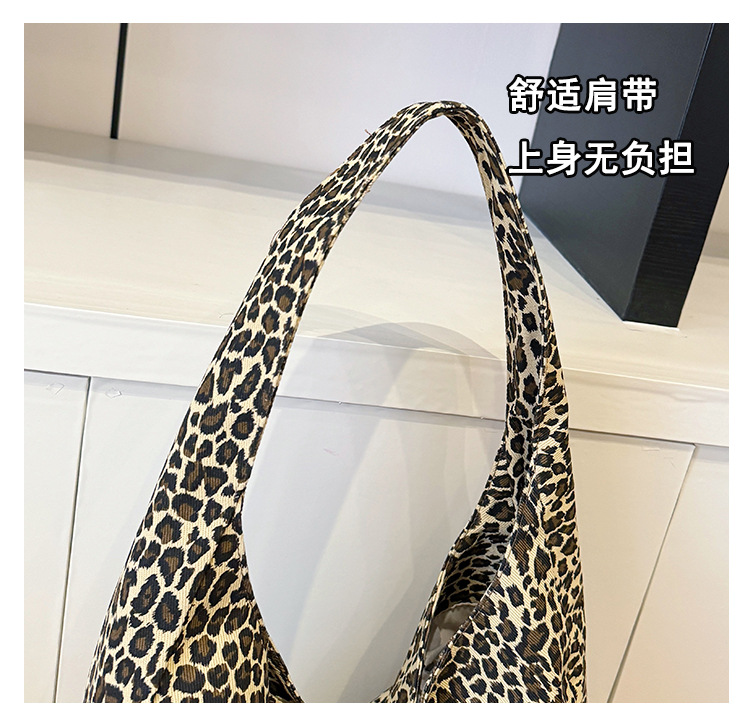 레오파드 무늬 캔버스 가방 여성 2024 새로운 한국 스타일 대용량 크로스 바디 백 클래스 통근 어깨 언더암 토트 백