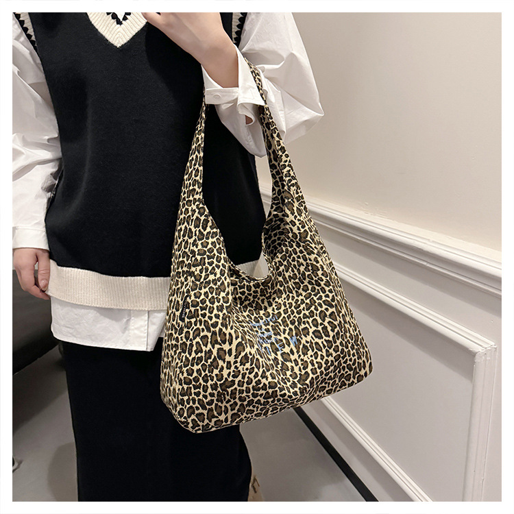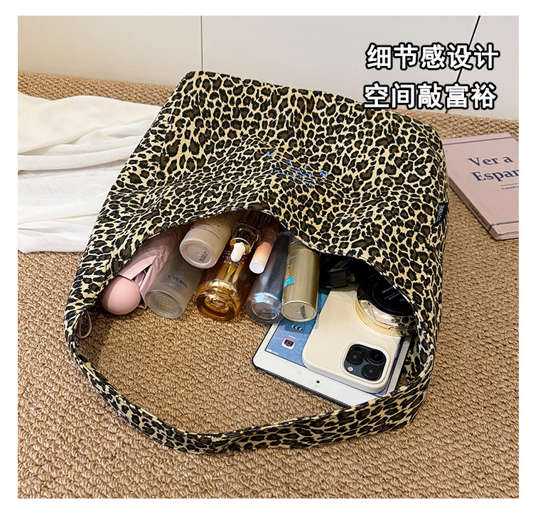 레오파드 무늬 캔버스 가방 여성 2024 새로운 한국 스타일 대용량 크로스 바디 백 클래스 통근 어깨 언더암 토트 백스토어 가기