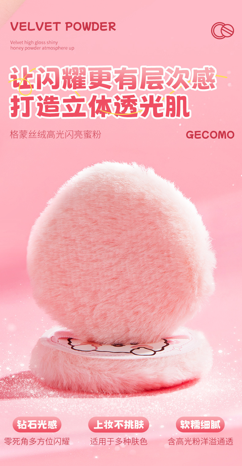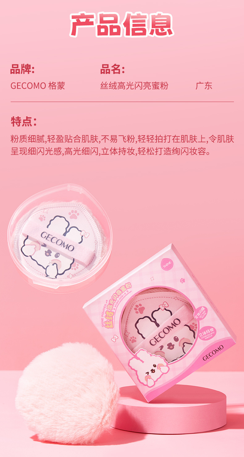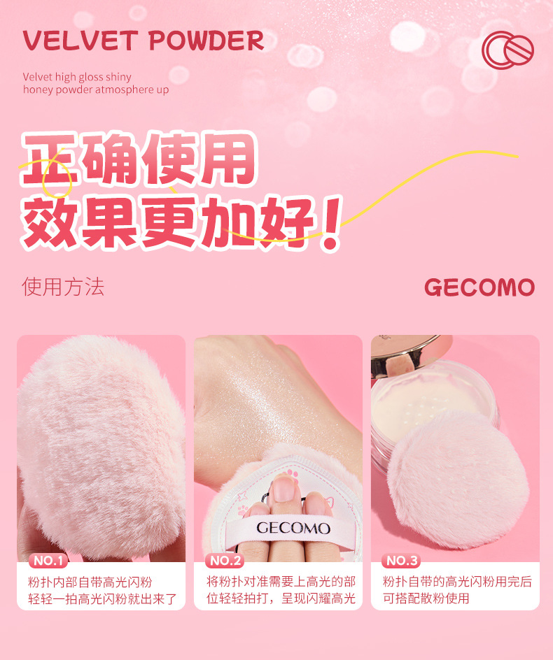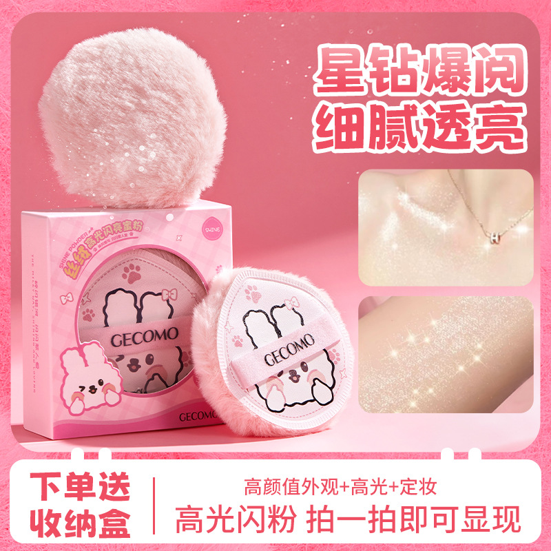 징루이 GECOMO 벨벳 하이라이팅 샤이니 파우더 퍼프, 파인 글리터 세팅 파우더, 쇄골 및 바디 브라이트닝 글리터 하이라이팅 볼스토어 가기