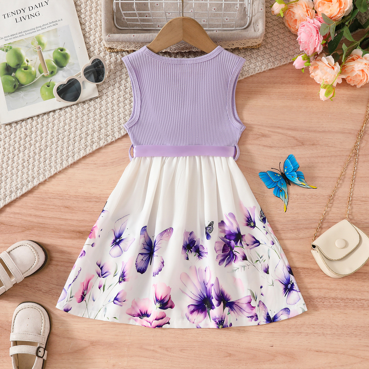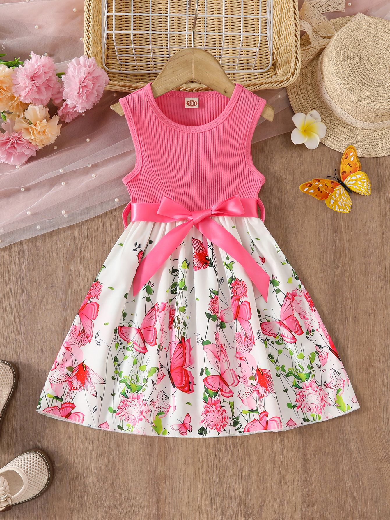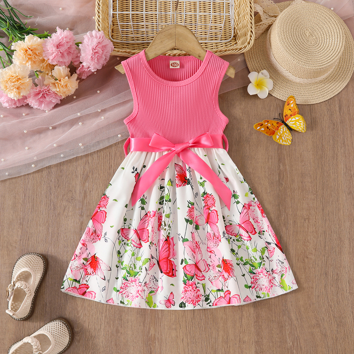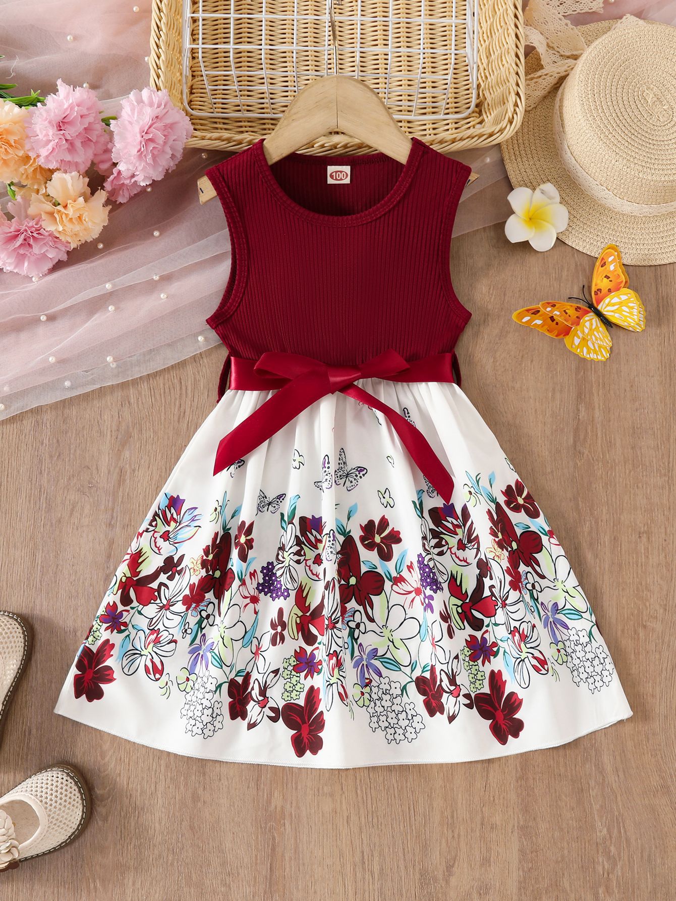 국경 간 대외 무역 어린이 민소매 둥근 목 목가적 인 작은 꽃 원피스 벨트 2 피스 세트
