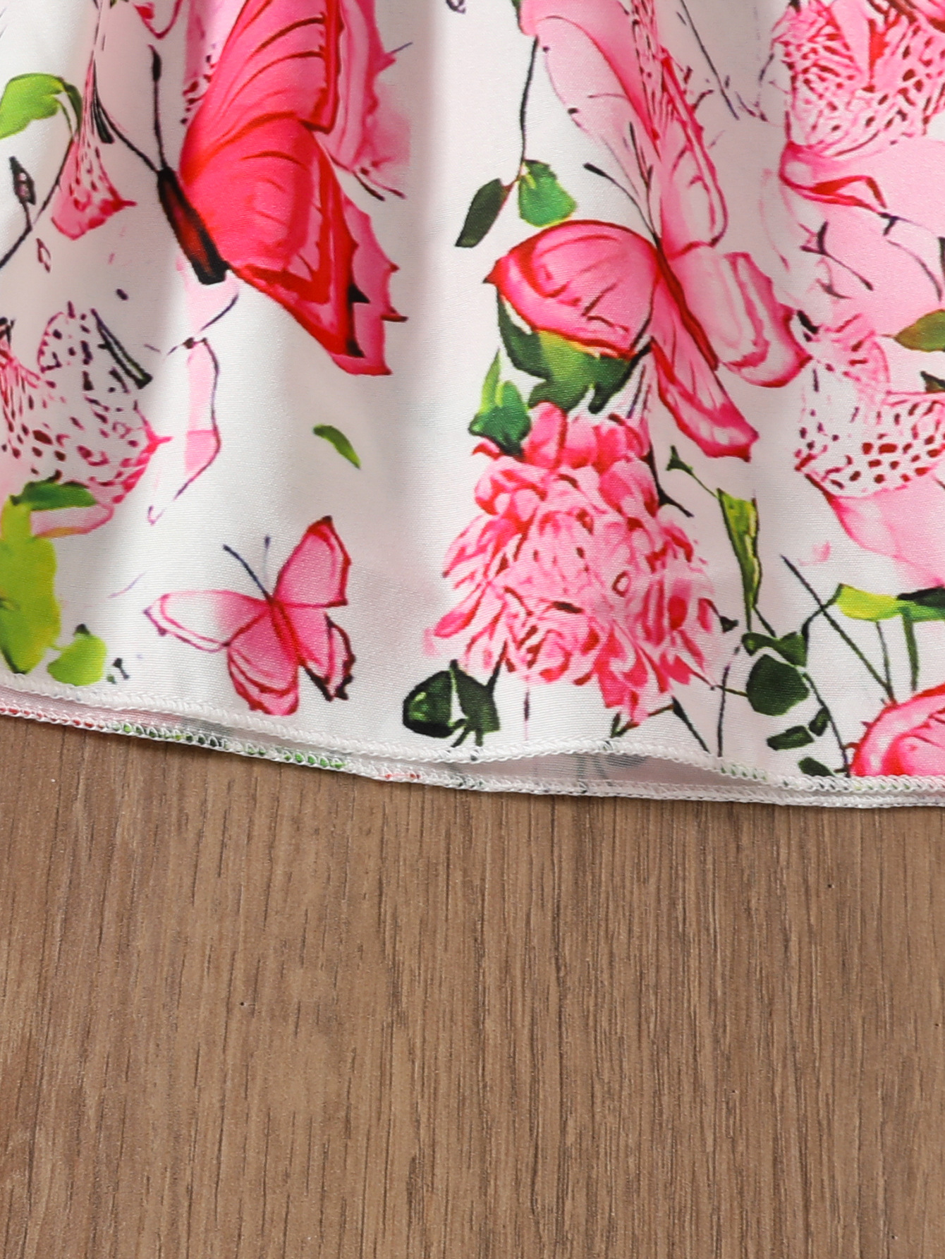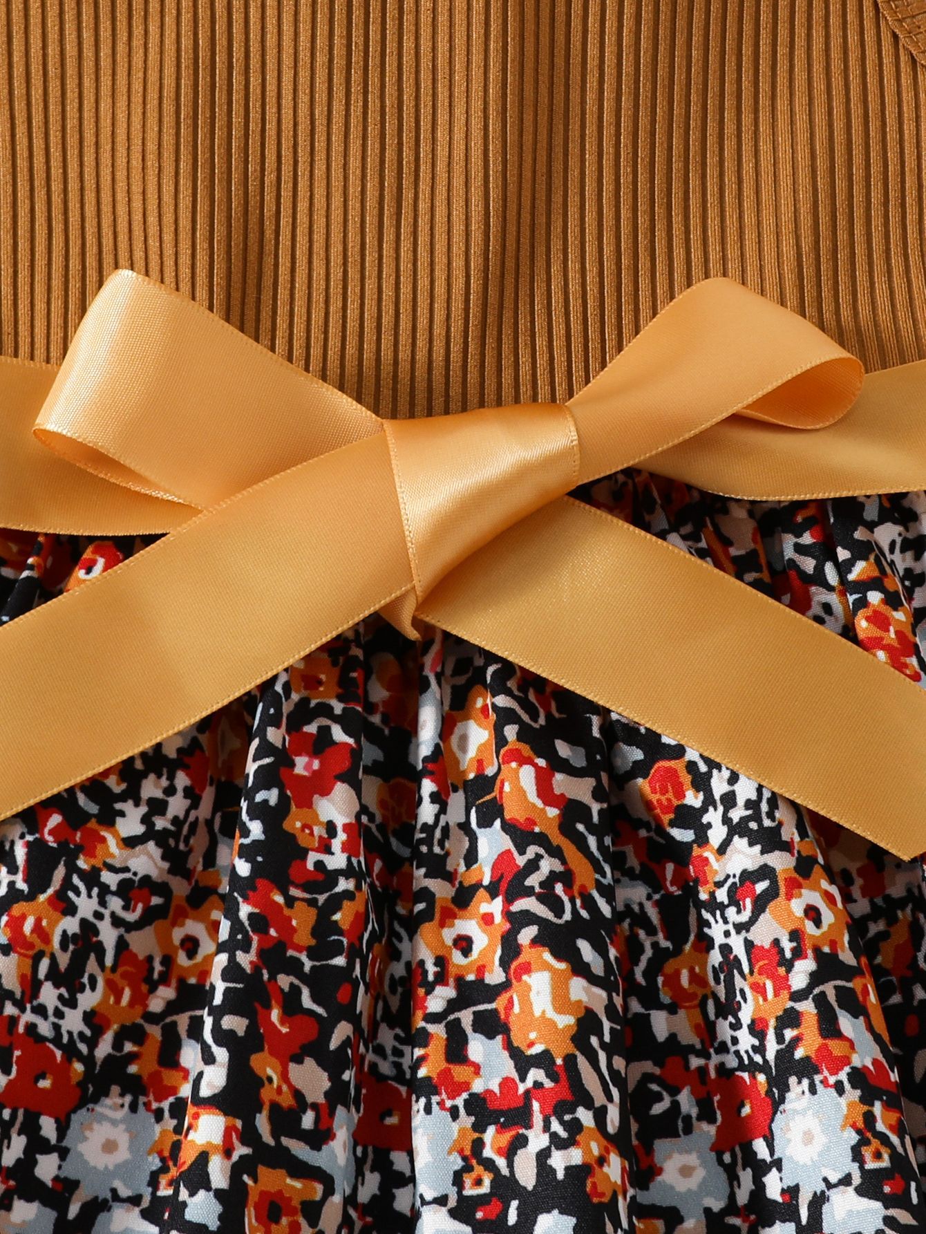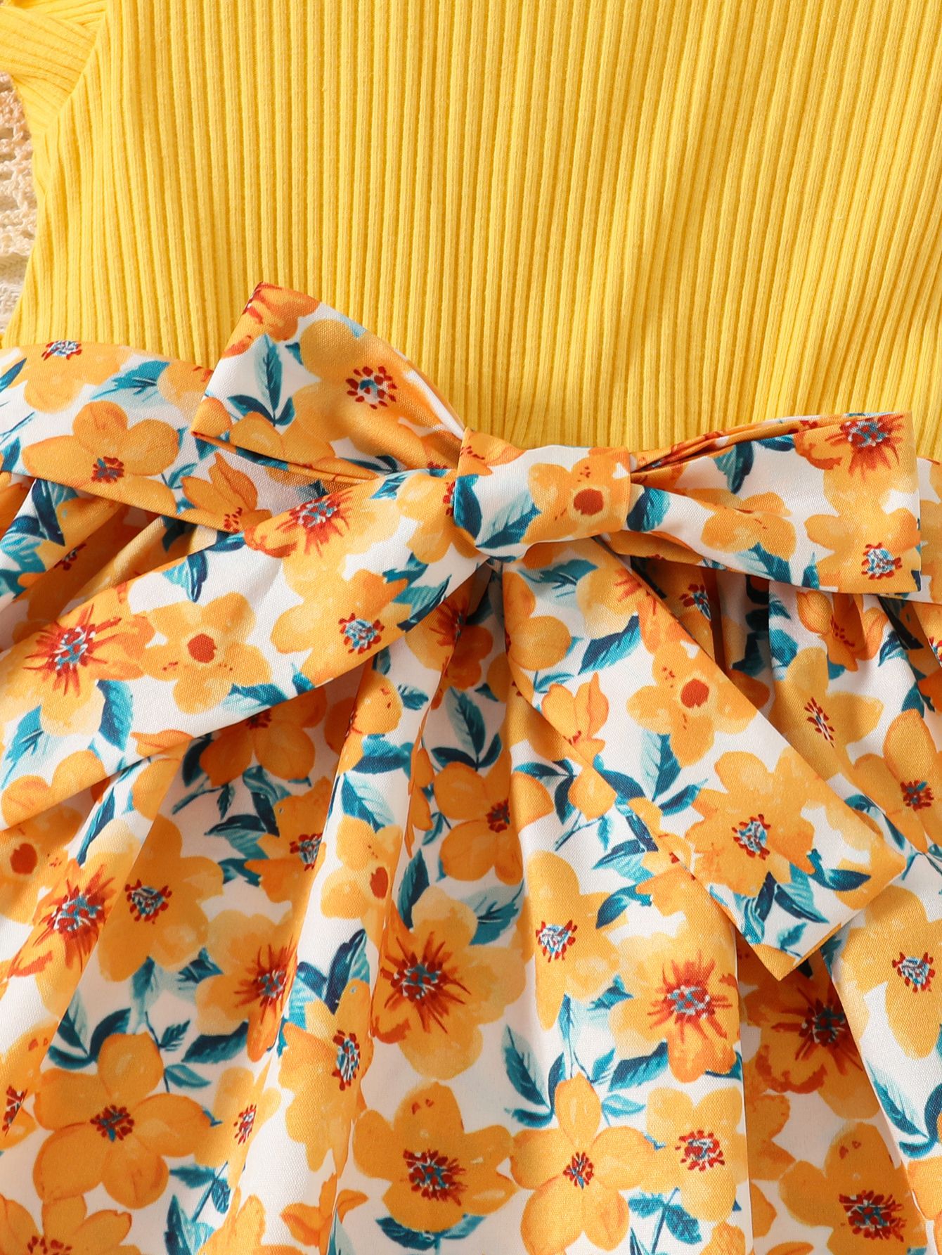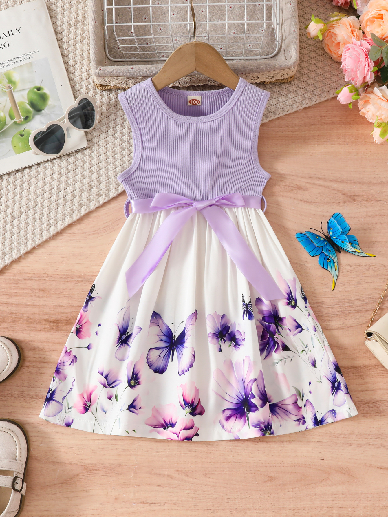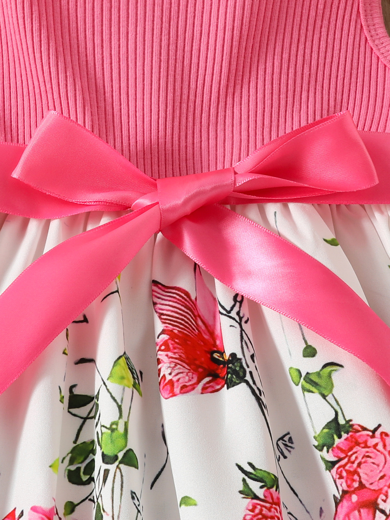국경 간 대외 무역 어린이 민소매 둥근 목 목가적 인 작은 꽃 원피스 벨트 2 피스 세트