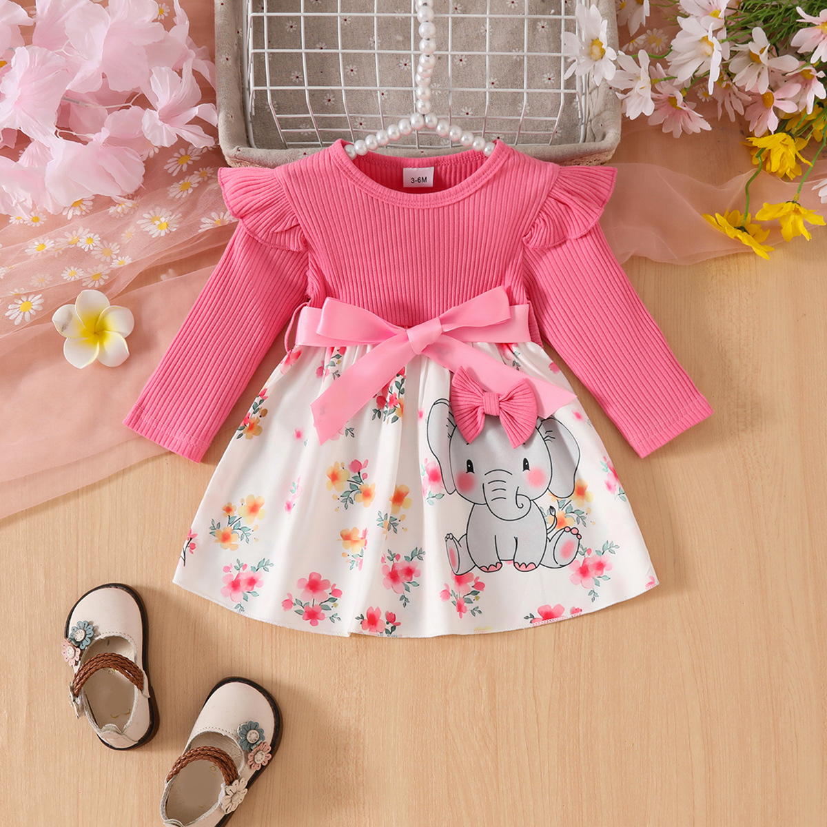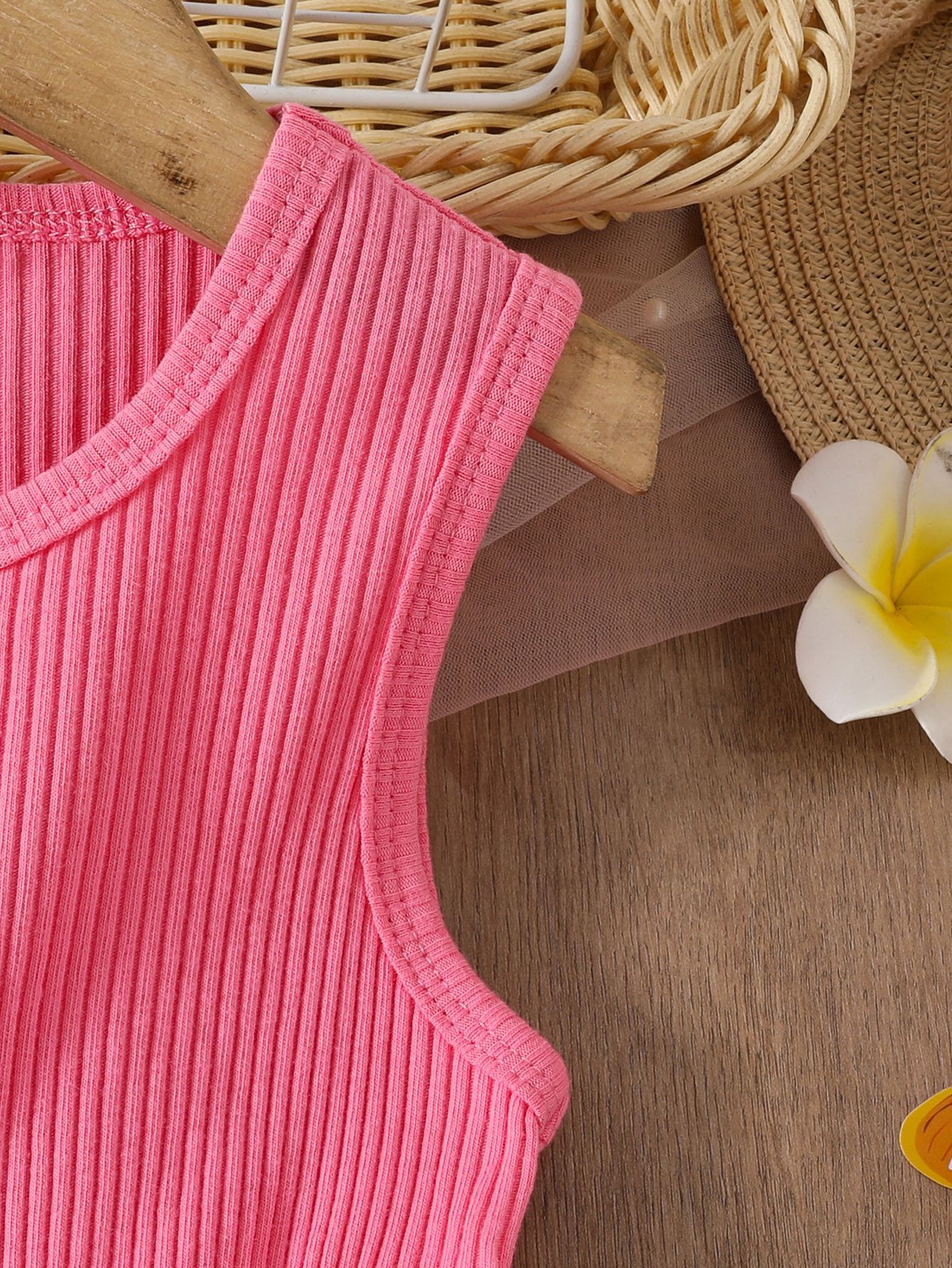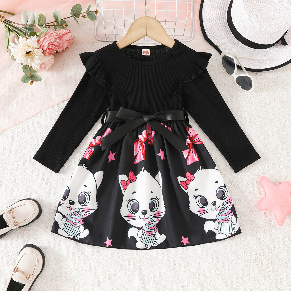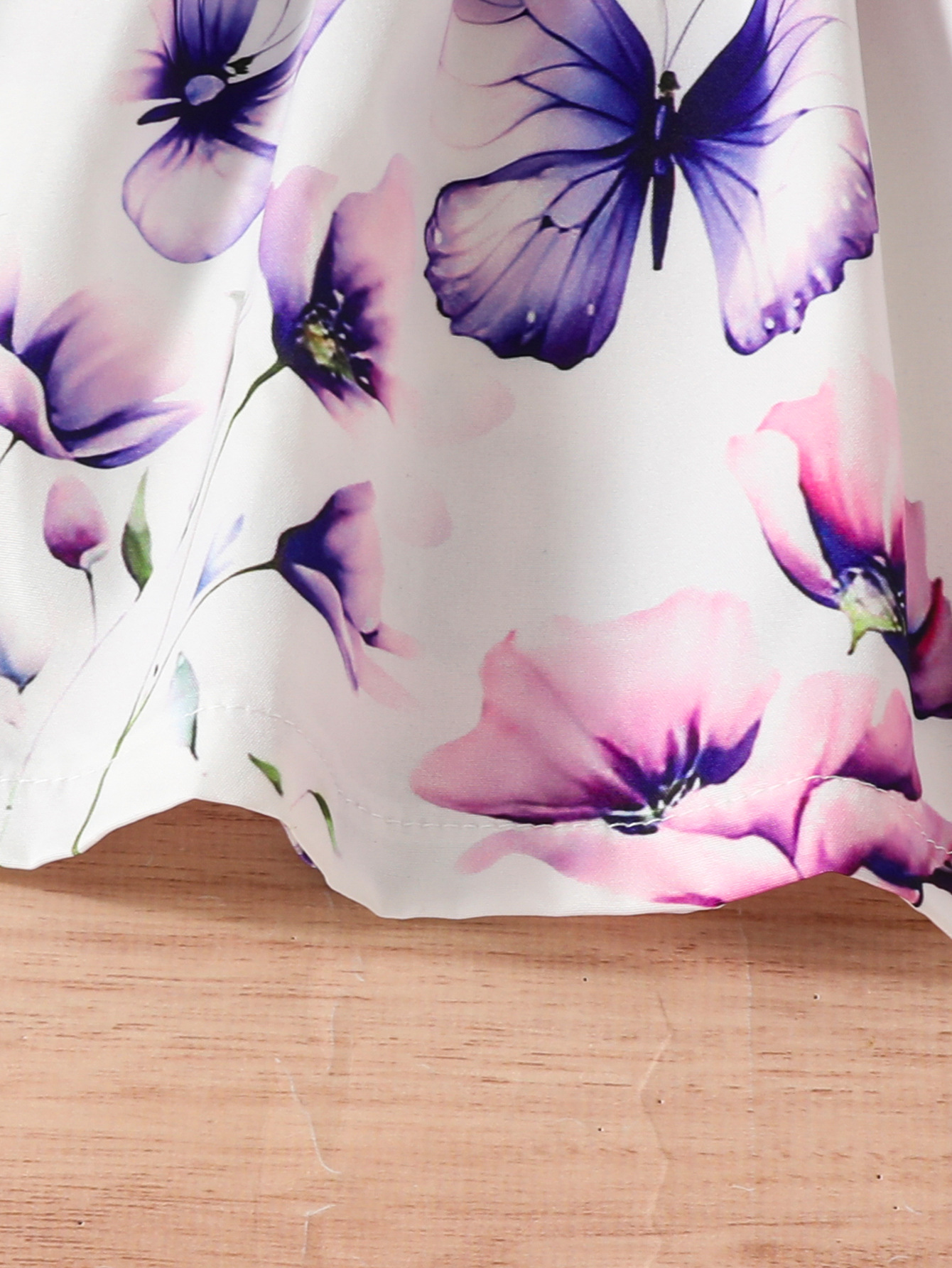 국경 간 대외 무역 어린이 민소매 둥근 목 목가적 인 작은 꽃 원피스 벨트 2 피스 세트