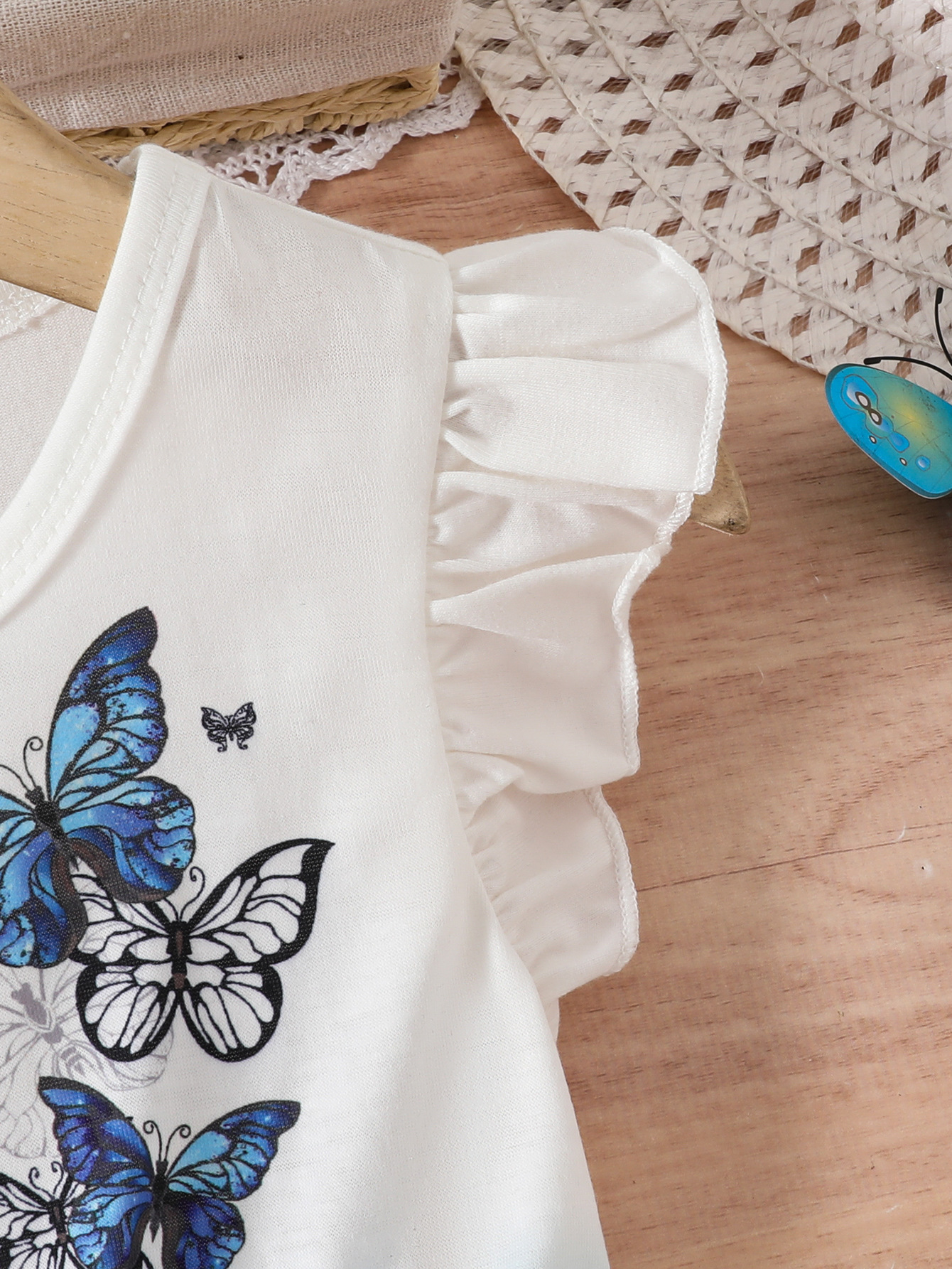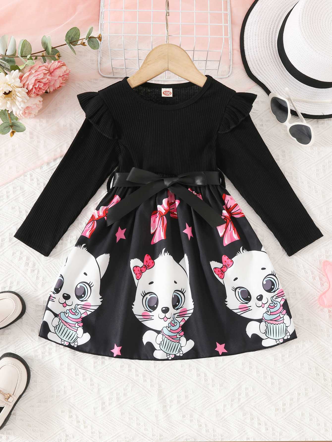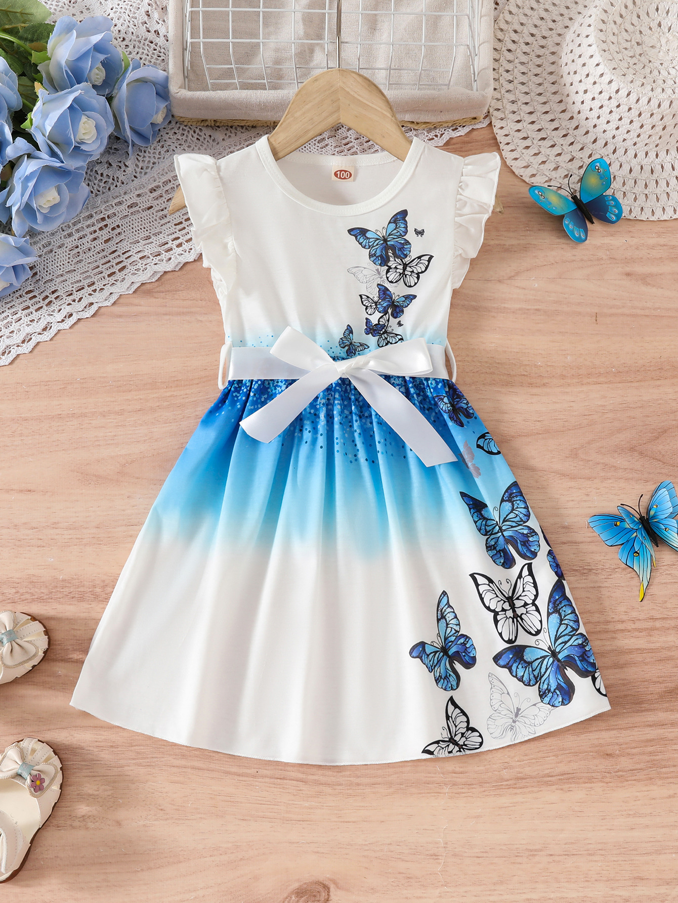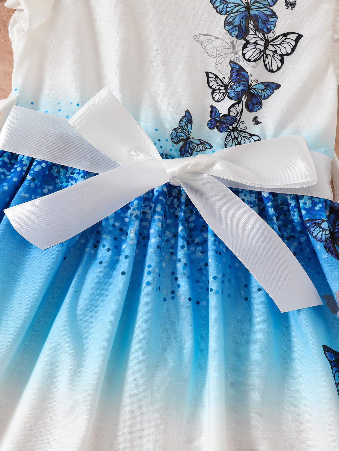 국경 간 대외 무역 어린이 민소매 둥근 목 목가적 인 작은 꽃 원피스 벨트 2 피스 세트
