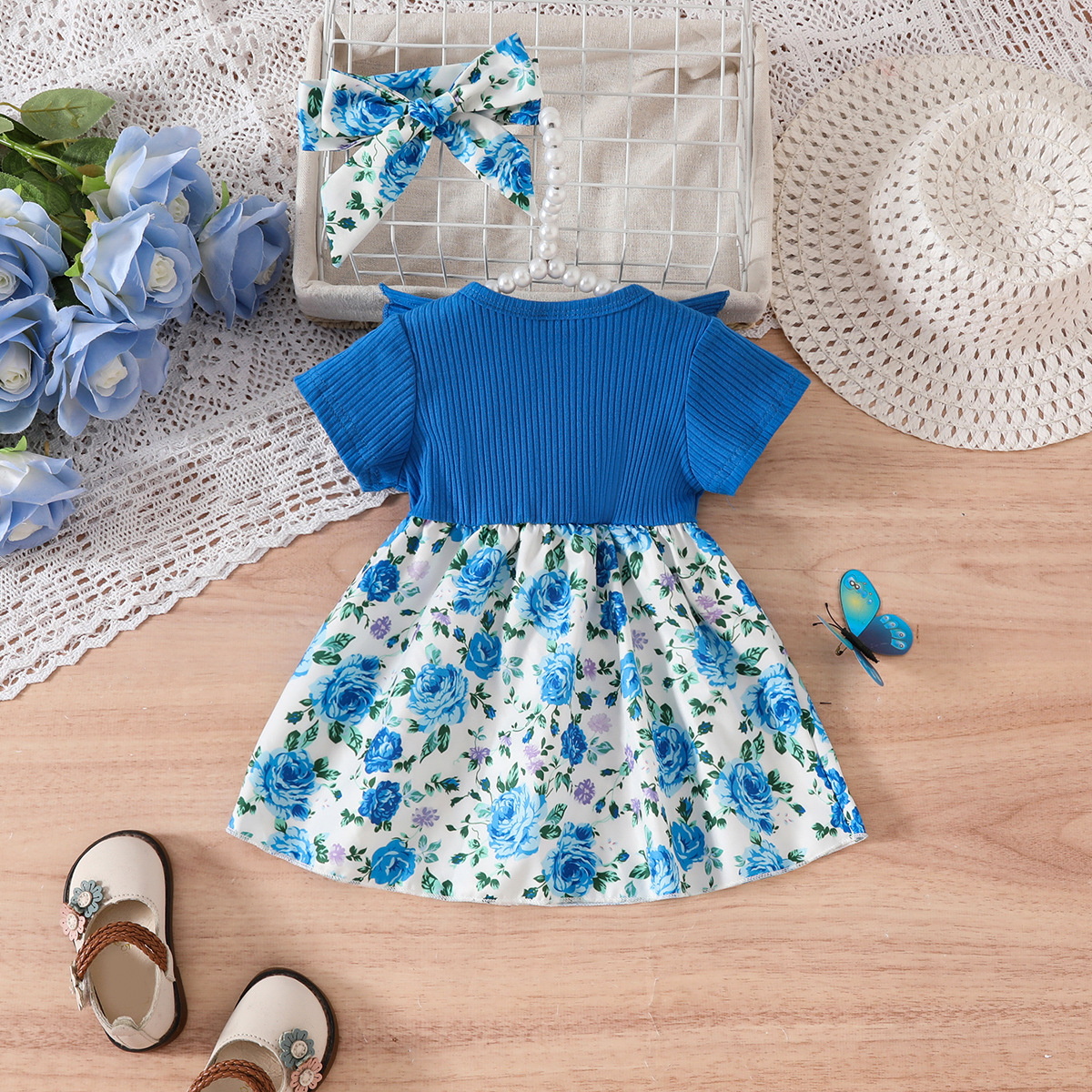 국경 간 대외 무역 어린이 민소매 둥근 목 목가적 인 작은 꽃 원피스 벨트 2 피스 세트스토어 가기