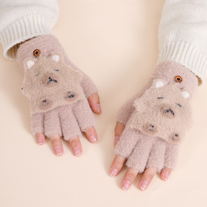 아기의 장갑 겨울 따뜻한 어린이 플립 커버 반 손가락 Capibala 귀여운 소녀의 만화 먼지 다섯 손가락 두꺼운