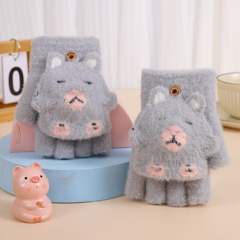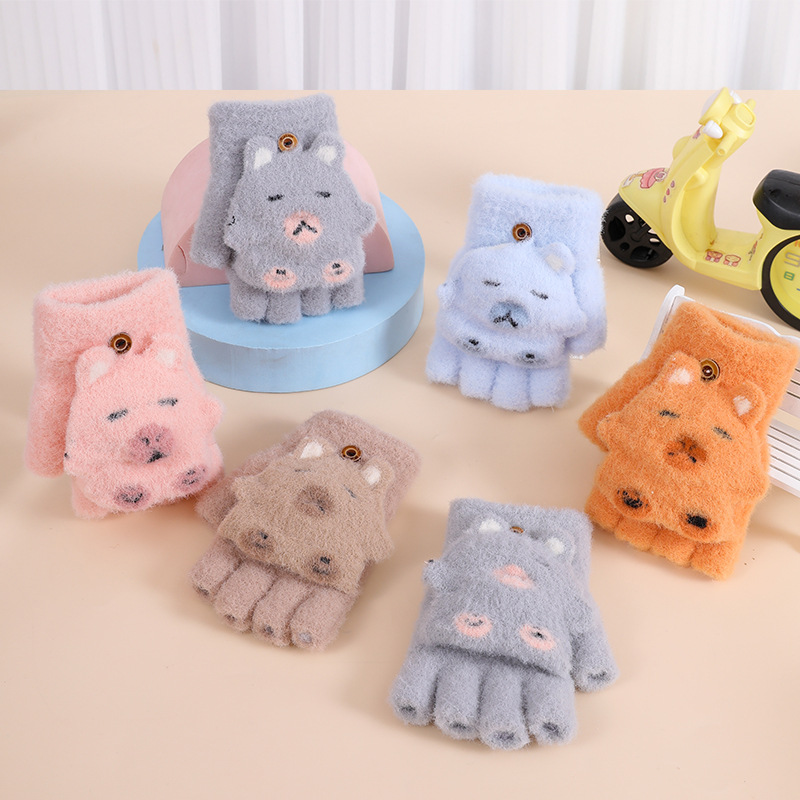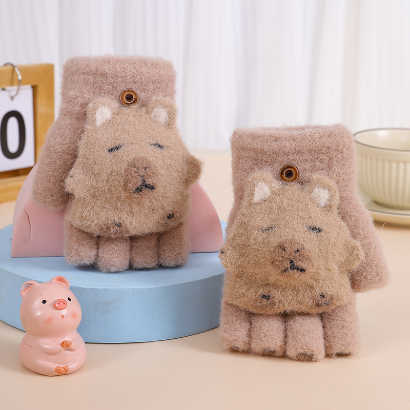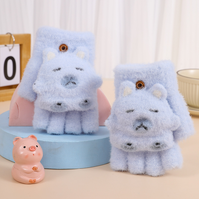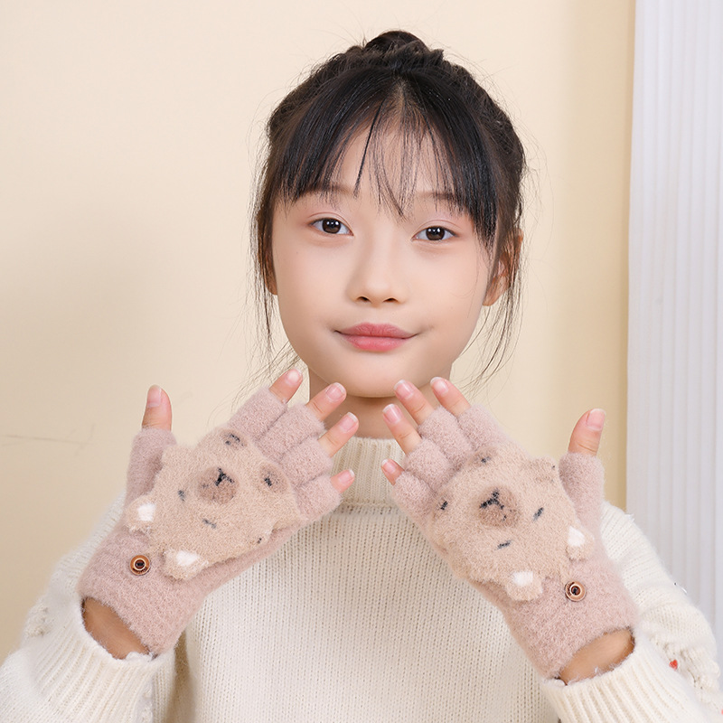 아기의 장갑 겨울 따뜻한 어린이 플립 커버 반 손가락 Capibala 귀여운 소녀의 만화 먼지 다섯 손가락 두꺼운스토어 가기