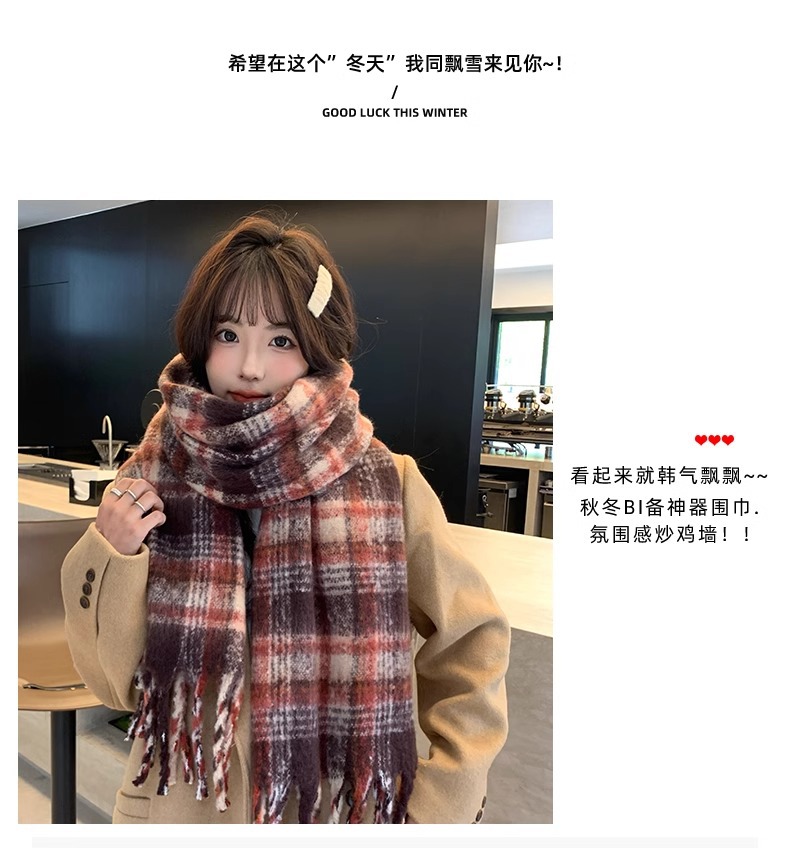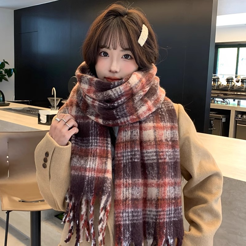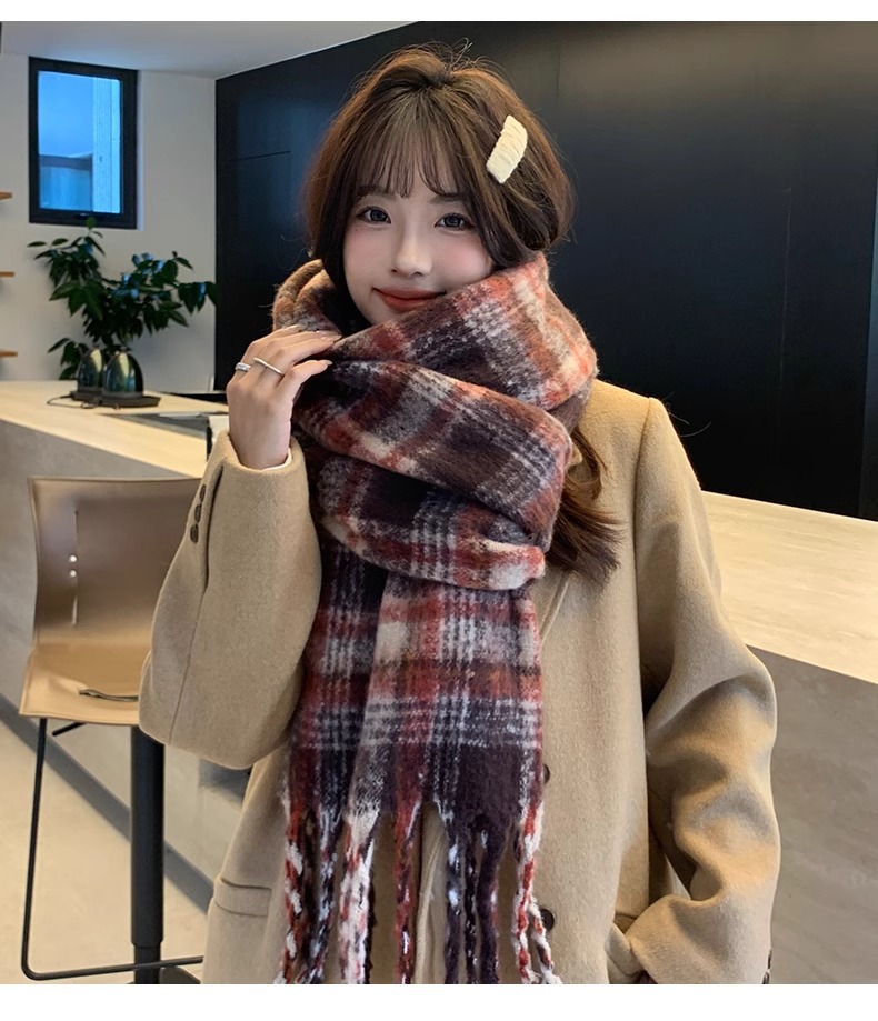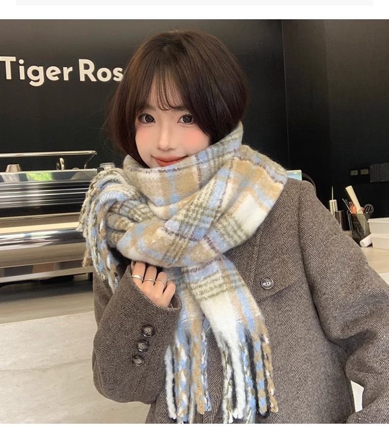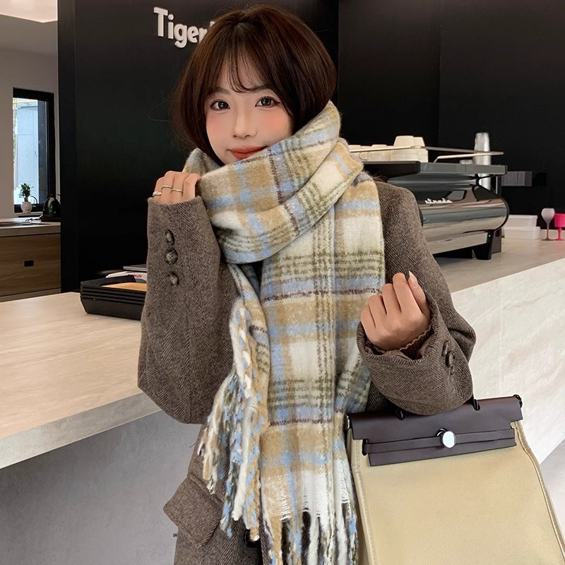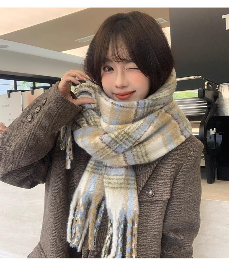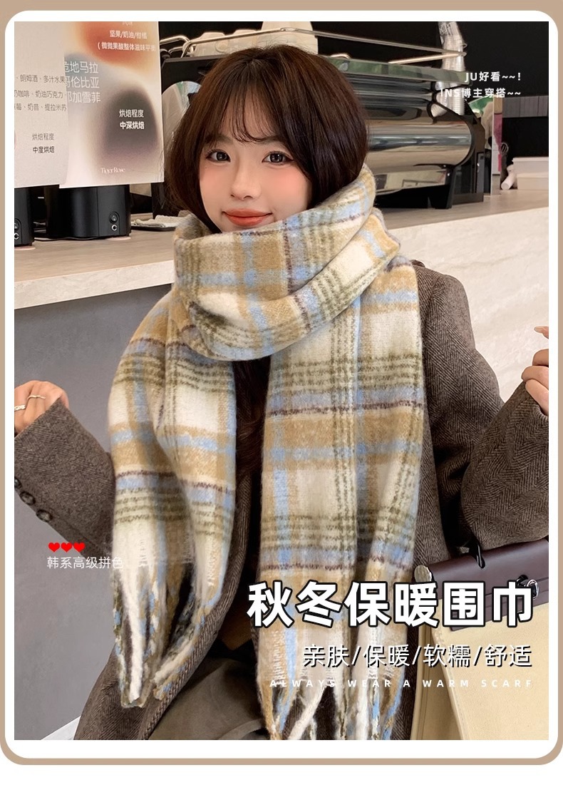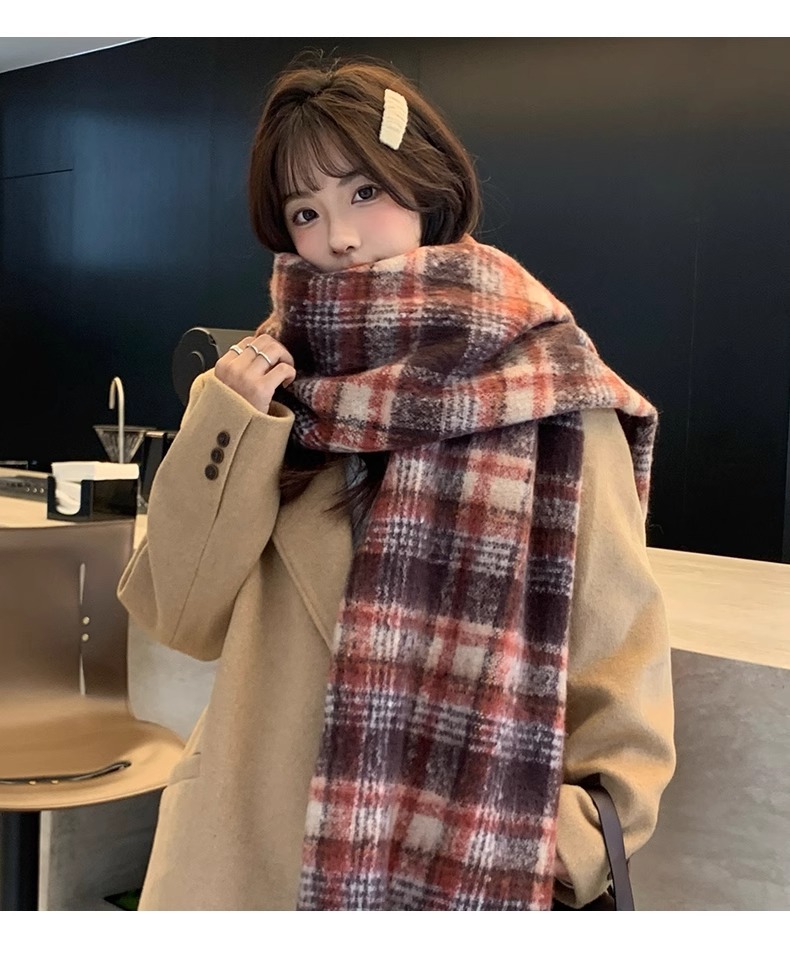 따뜻한 카페 마일라드 프리미엄 격자 무늬 스카프 여성 가을 겨울 빈티지 올매치 두꺼운 따뜻한 목도리 스카프 패션스토어 가기