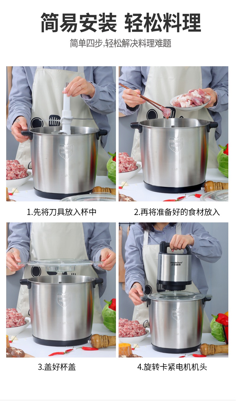 독일 브랜드의 새로운 고출력 가정용 상업용 고기 분쇄기 1800w 고기 페이스트 기계 대용량 볶음 칠리 소스스토어 가기