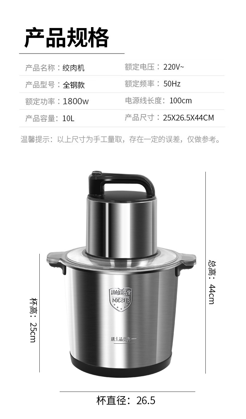 • 10리터 1600-1900w 순수 구리 모터 칼 3세트 [평생 보증]
