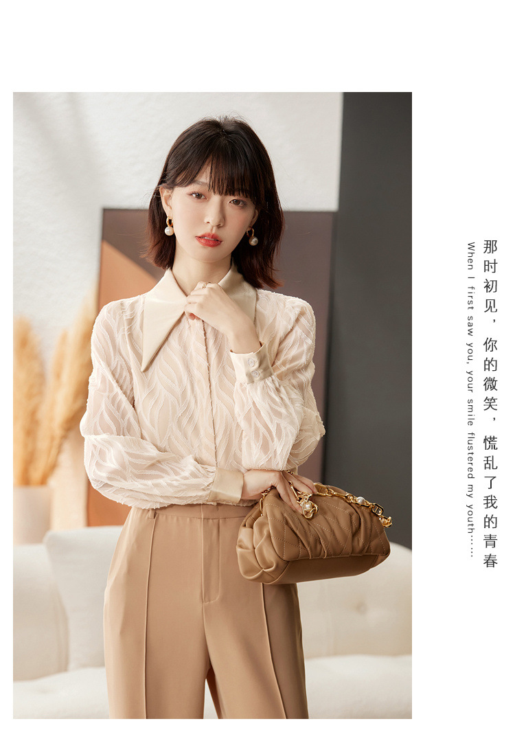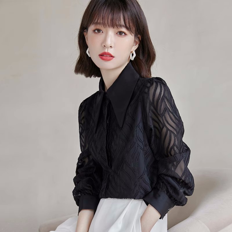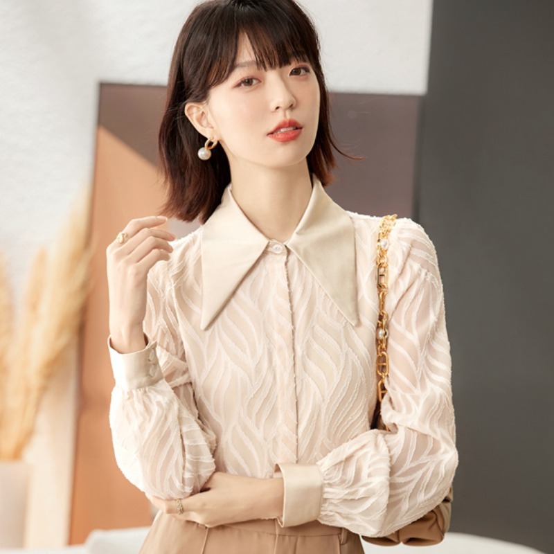 우아한 슬림 긴 소매 셔츠 여성의 2024 가을 새로운 자카드 레트로 탑 느슨한 플러스 사이즈 배꼽 덮개 셔츠스토어 가기
