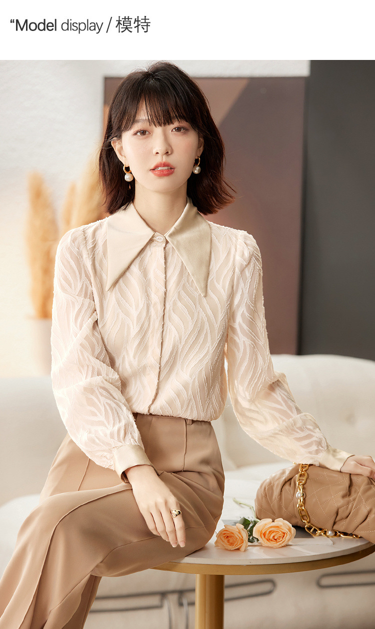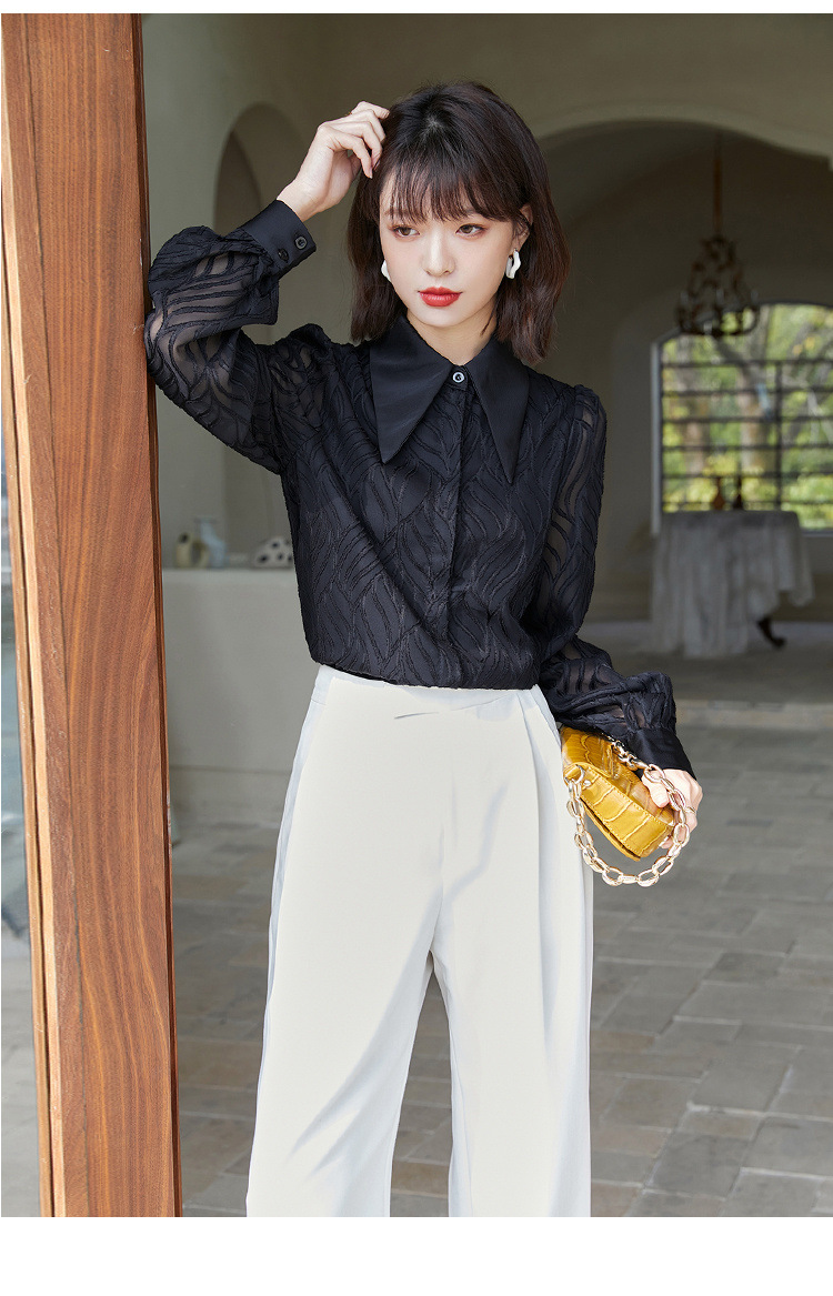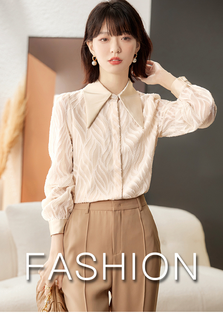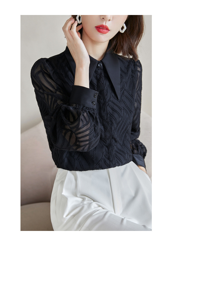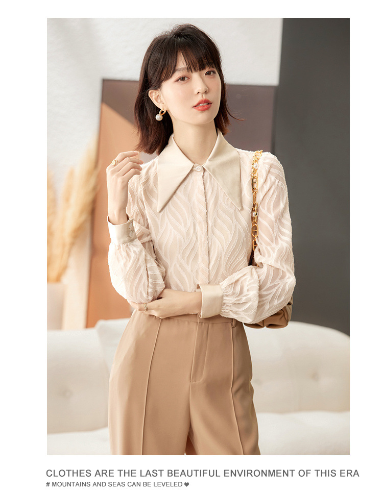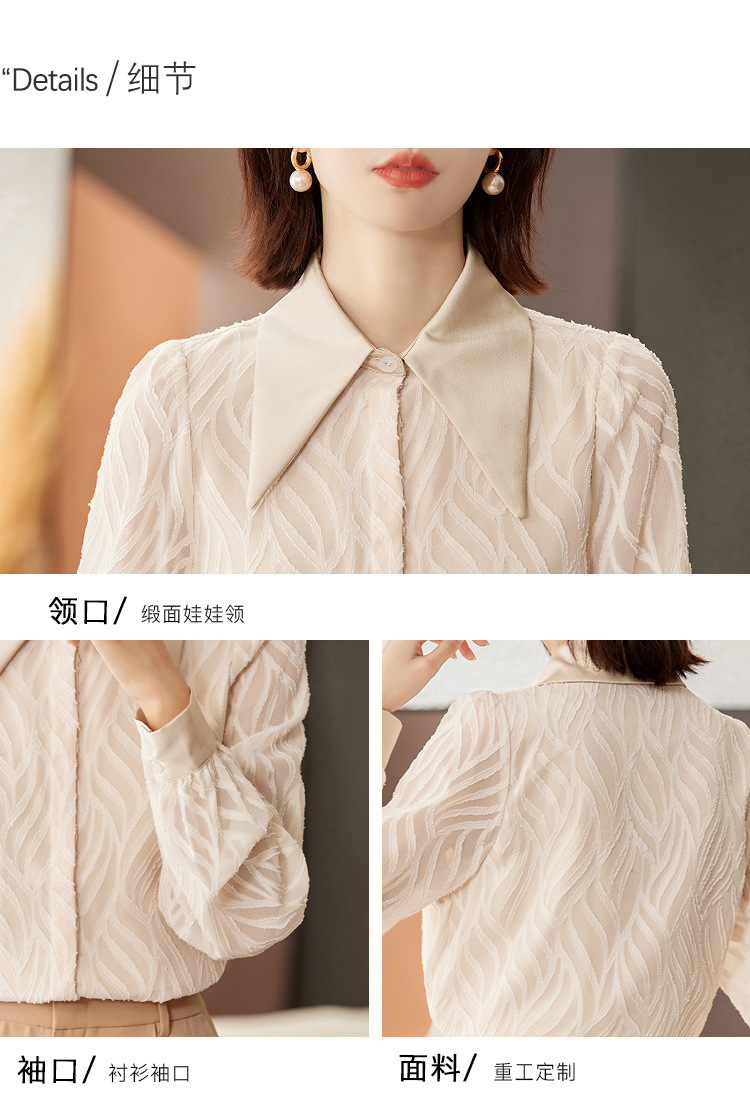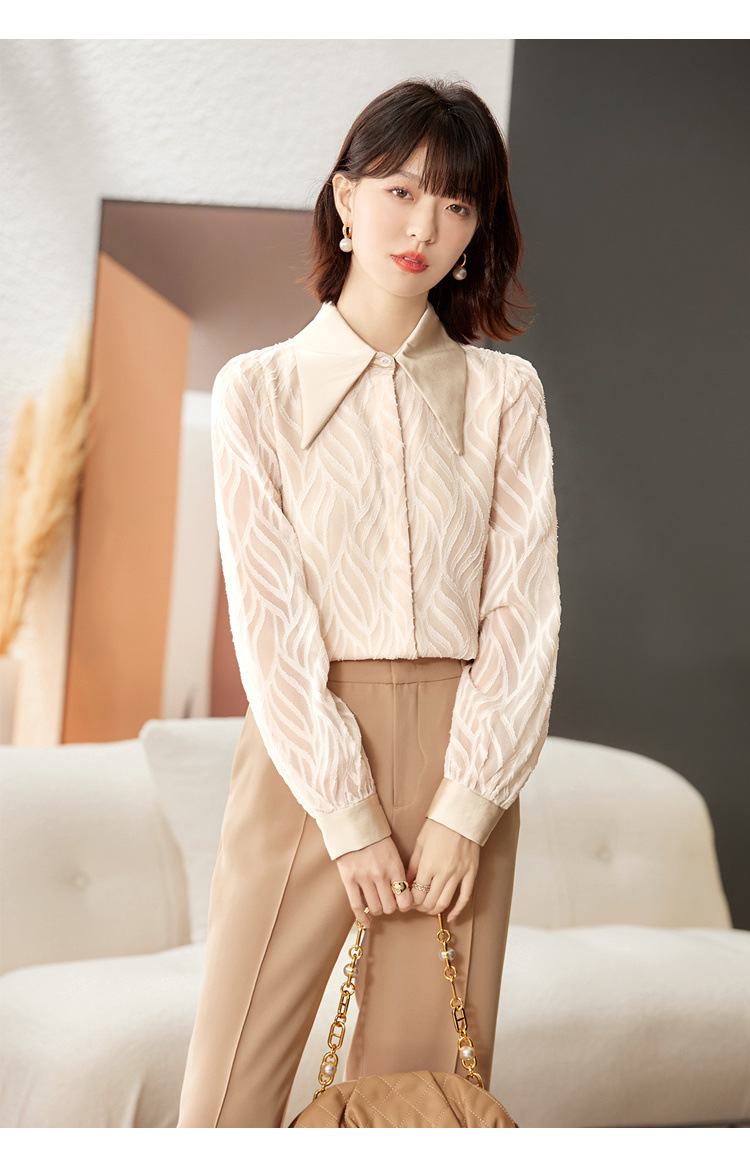 우아한 슬림 긴 소매 셔츠 여성의 2024 가을 새로운 자카드 레트로 탑 느슨한 플러스 사이즈 배꼽 덮개 셔츠
