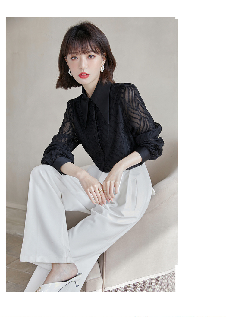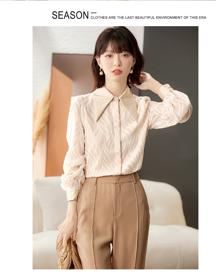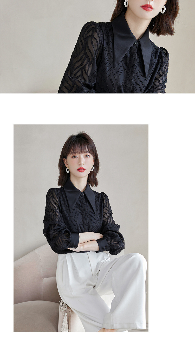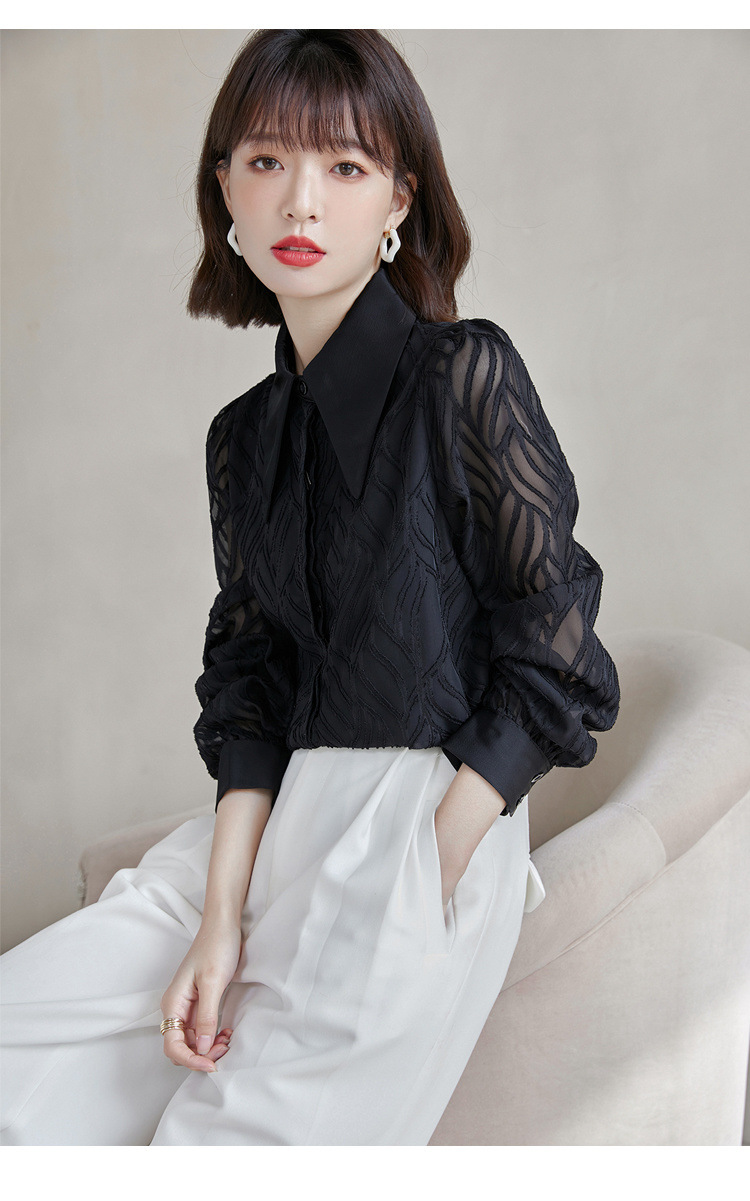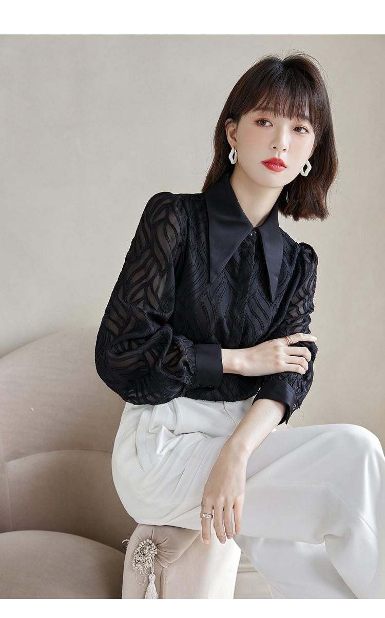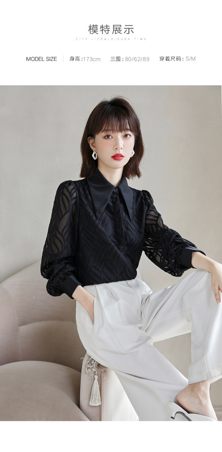 우아한 슬림 긴 소매 셔츠 여성의 2024 가을 새로운 자카드 레트로 탑 느슨한 플러스 사이즈 배꼽 덮개 셔츠