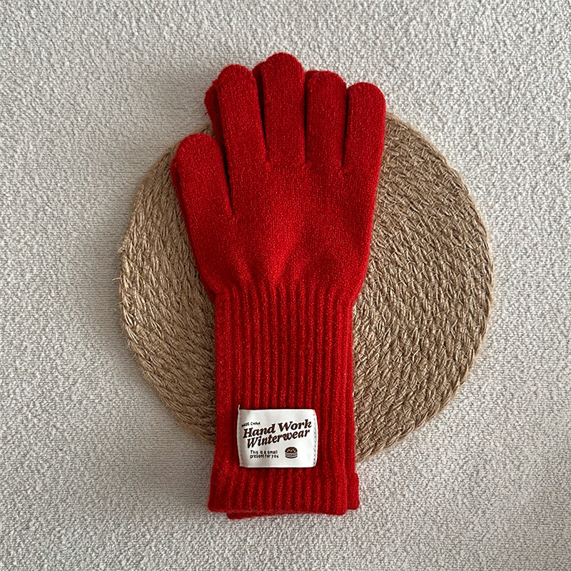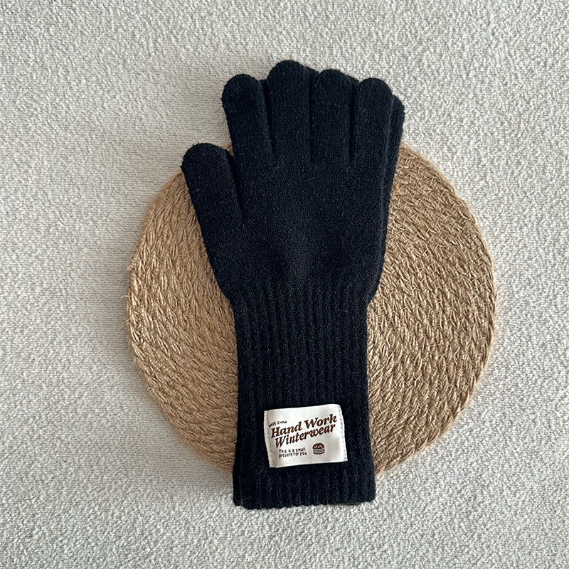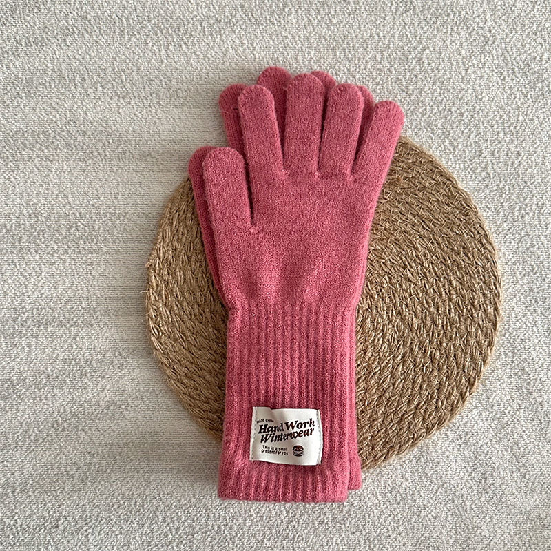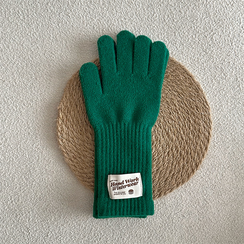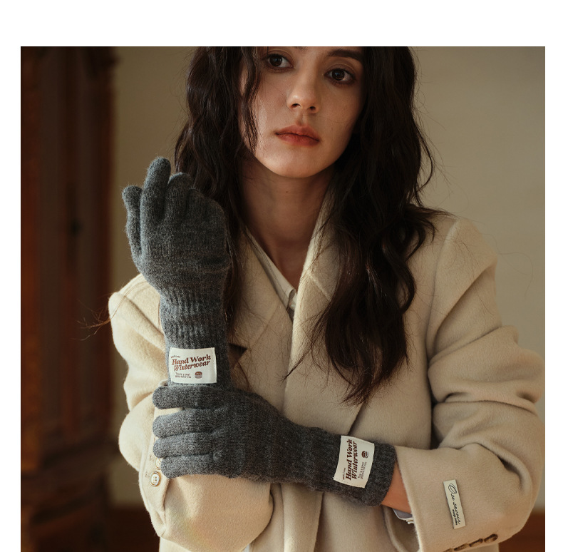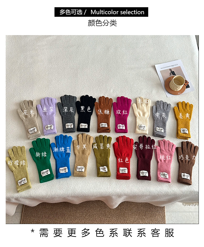 수제 18 색 단색 니트 롱 장갑 여성용 겨울 터치 스크린 손가락 방풍 5 손가락 라이딩 장갑