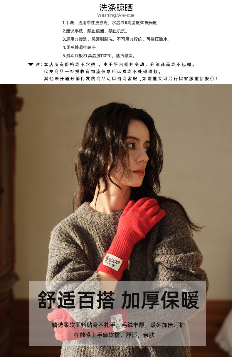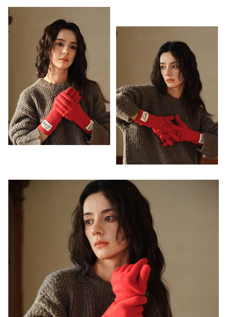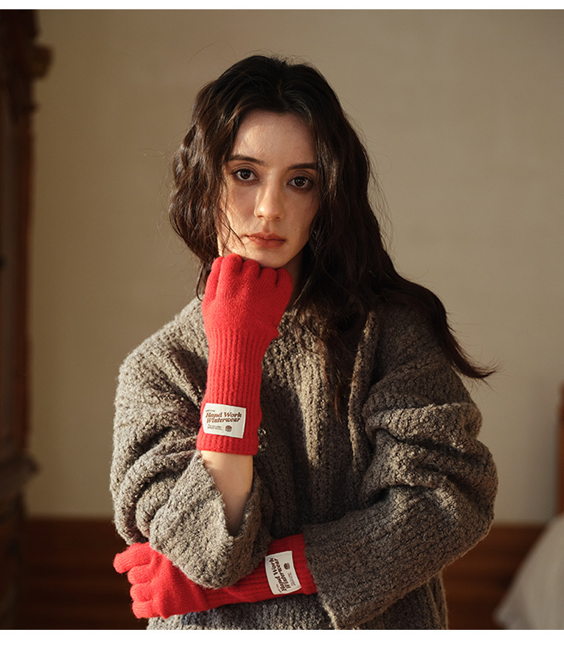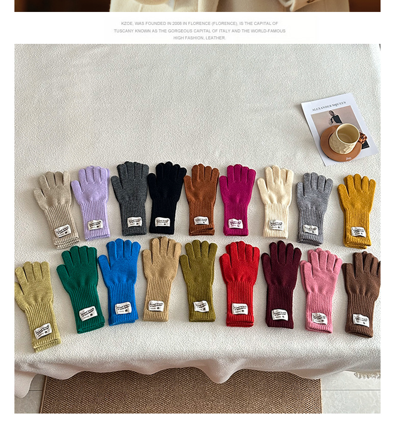 수제 18 색 단색 니트 롱 장갑 여성용 겨울 터치 스크린 손가락 방풍 5 손가락 라이딩 장갑스토어 가기