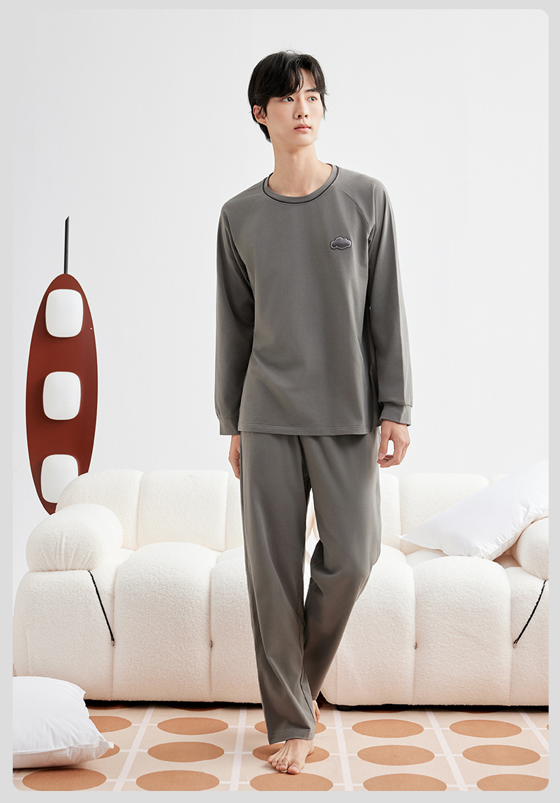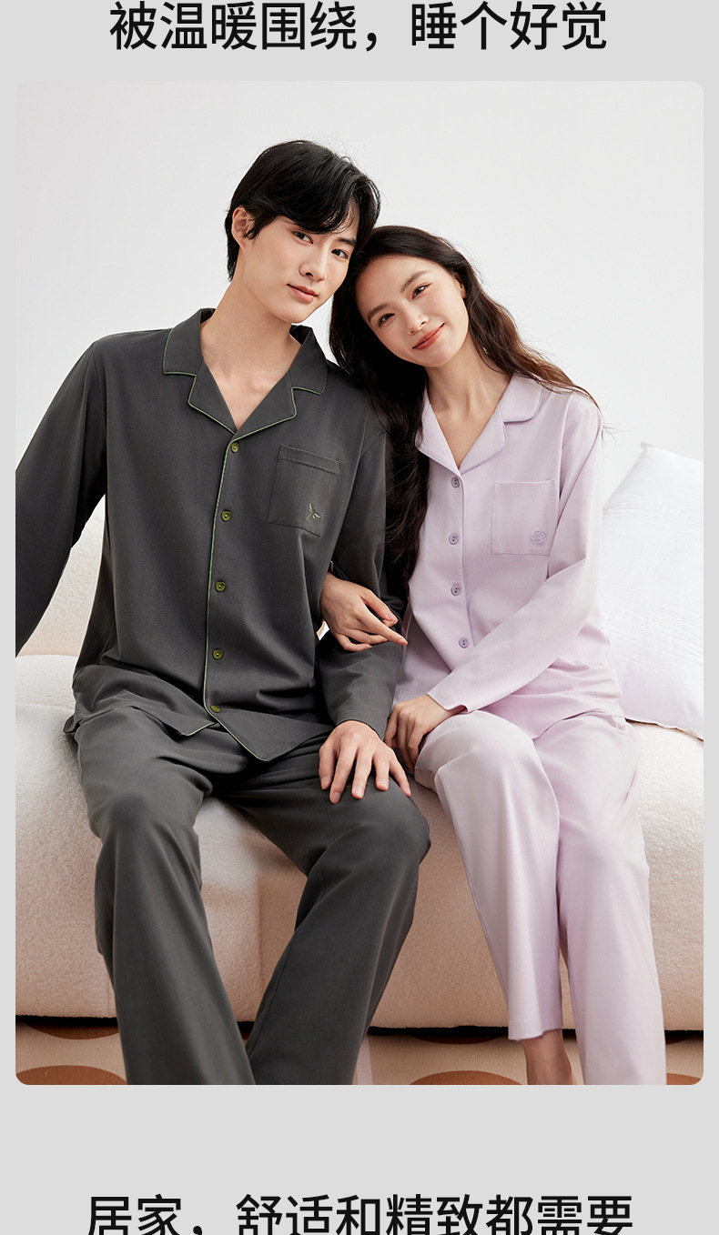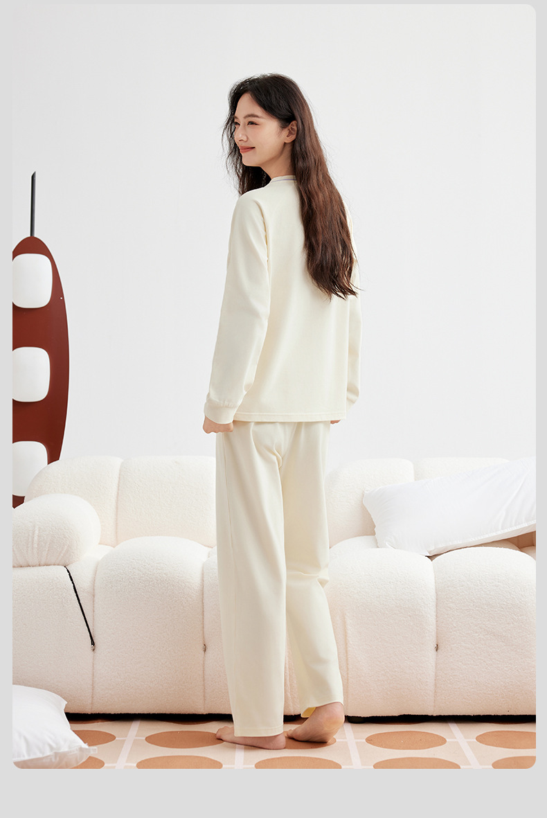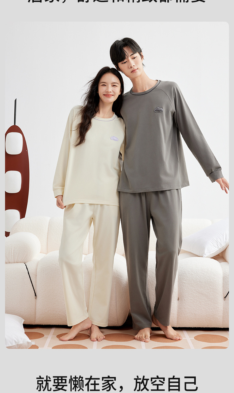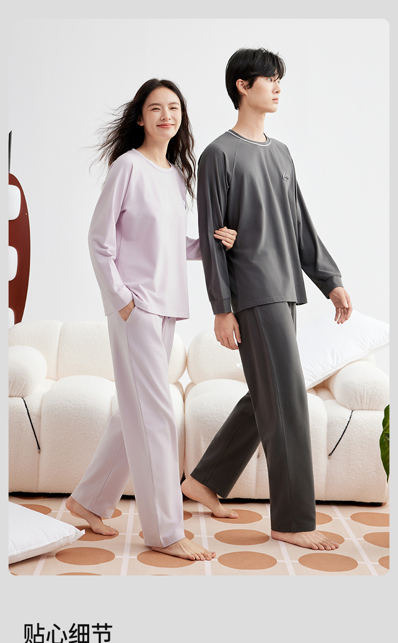 A급 220g 순면 가을 겨울 잠옷 여성용 순면 기모 두꺼운 따뜻한 커플 잠옷 홈웨어 세트스토어 가기