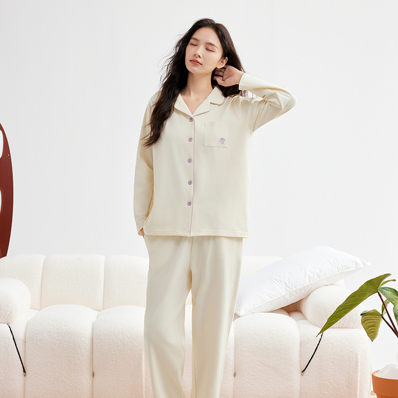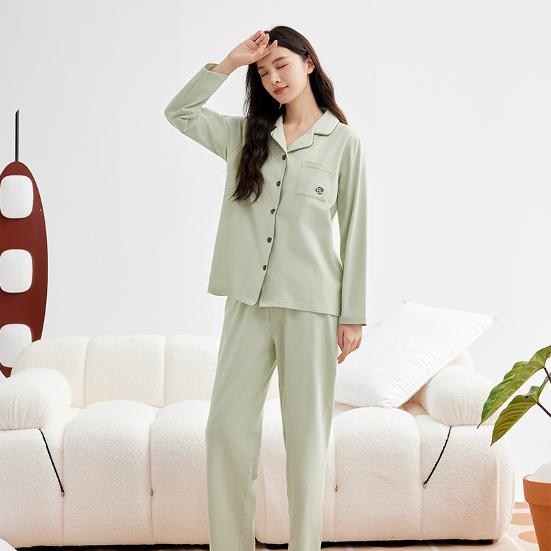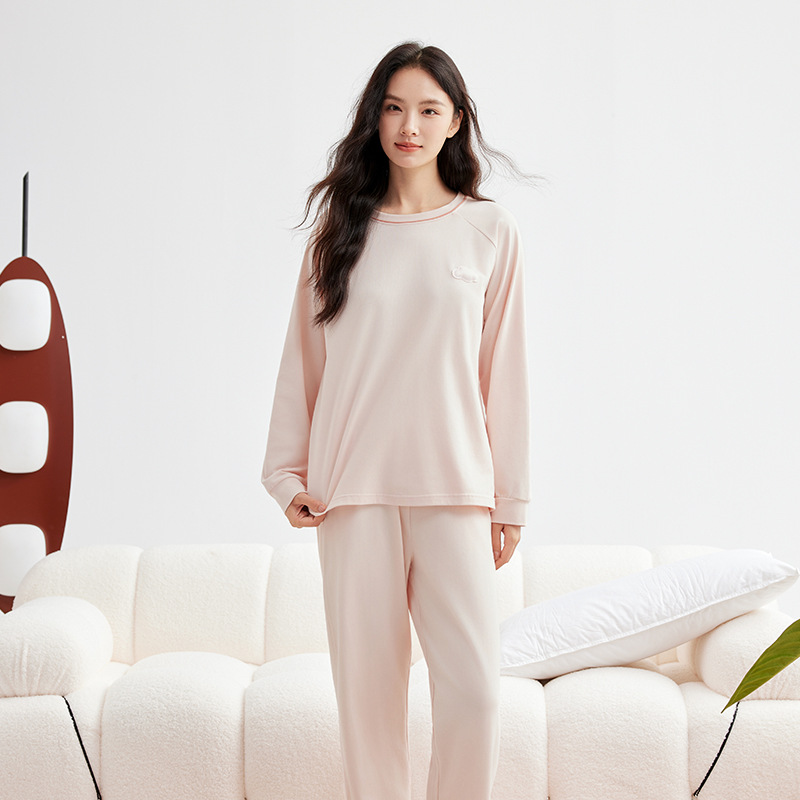 A급 220g 순면 가을 겨울 잠옷 여성용 순면 기모 두꺼운 따뜻한 커플 잠옷 홈웨어 세트