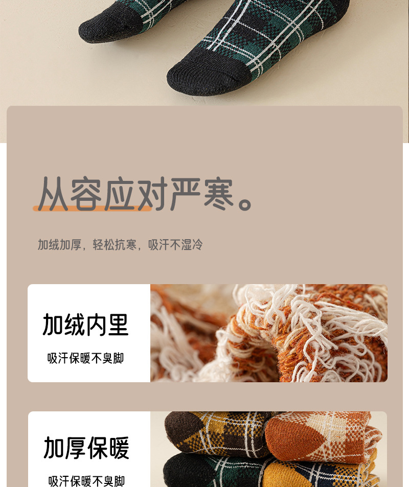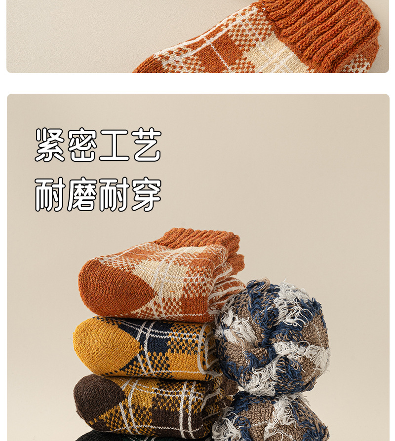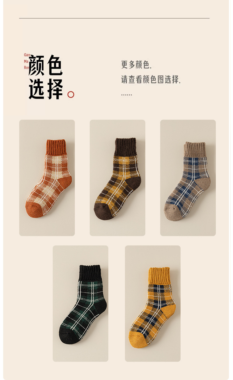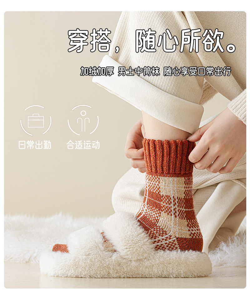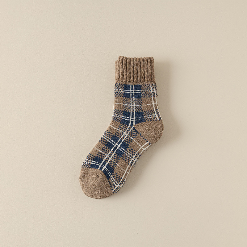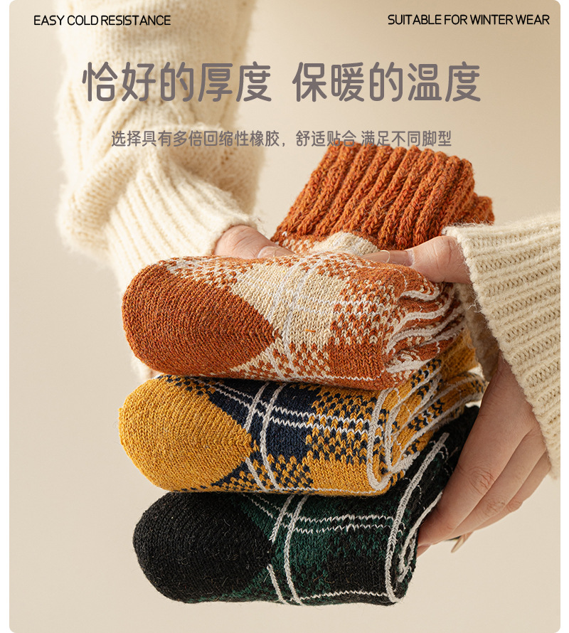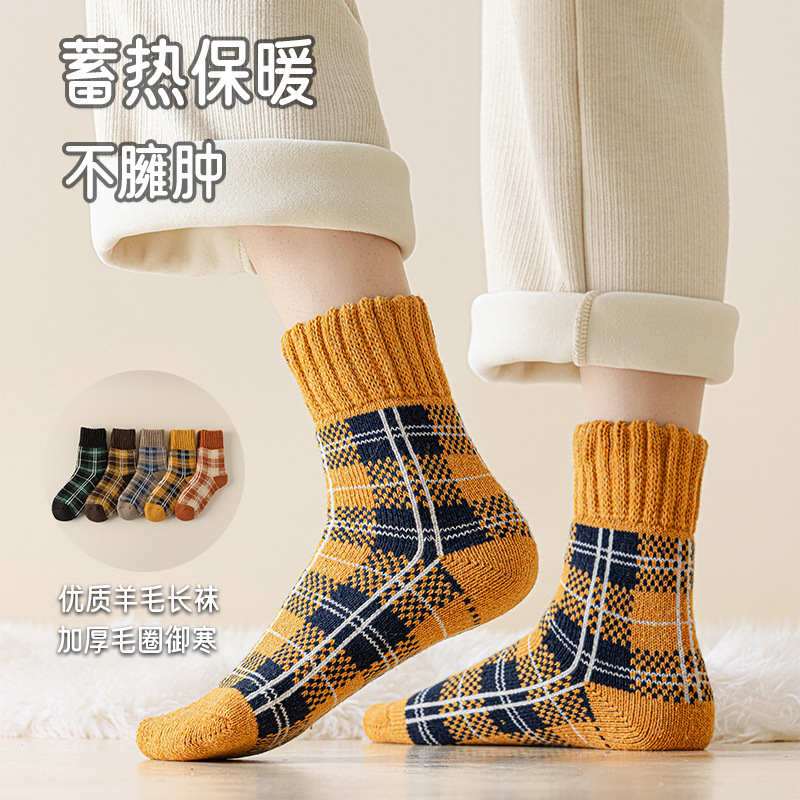 겨울 양모 양말 여성 기모 두꺼운 따뜻한 중간 튜브 양말 컬러 매칭 빈티지 패션 여성을위한 모든 매치 체크 무늬 테리 양말스토어 가기