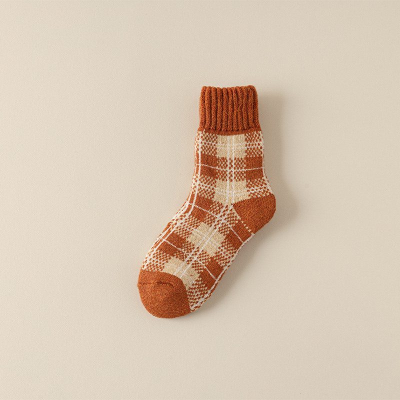 겨울 양모 양말 여성 기모 두꺼운 따뜻한 중간 튜브 양말 컬러 매칭 빈티지 패션 여성을위한 모든 매치 체크 무늬 테리 양말