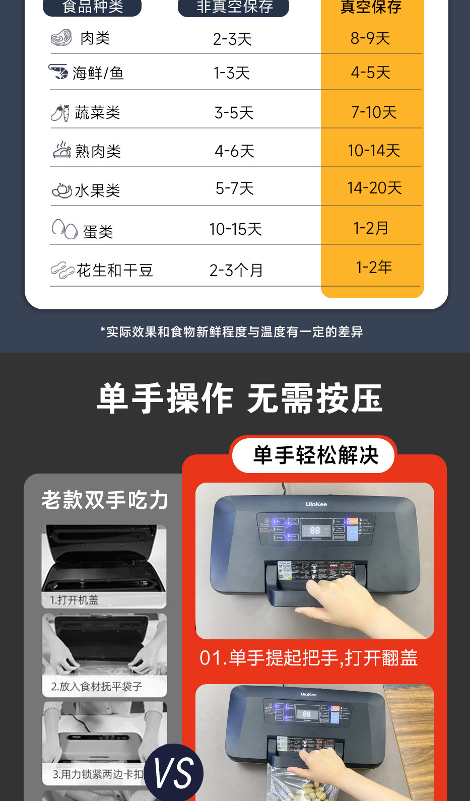 SV628 진공 밀봉 기계 플라스틱 밀봉 건조하고 젖은 밀봉 기계 중형 가정용 식품 보존 기계 상업 공장 국경스토어 가기
