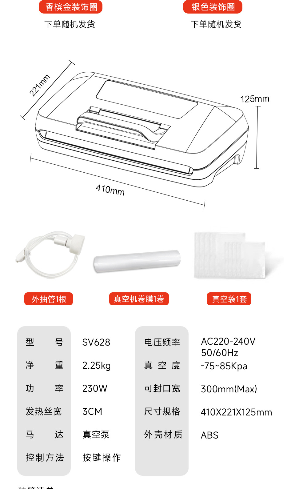 SV628 진공 밀봉 기계 플라스틱 밀봉 건조하고 젖은 밀봉 기계 중형 가정용 식품 보존 기계 상업 공장 국경