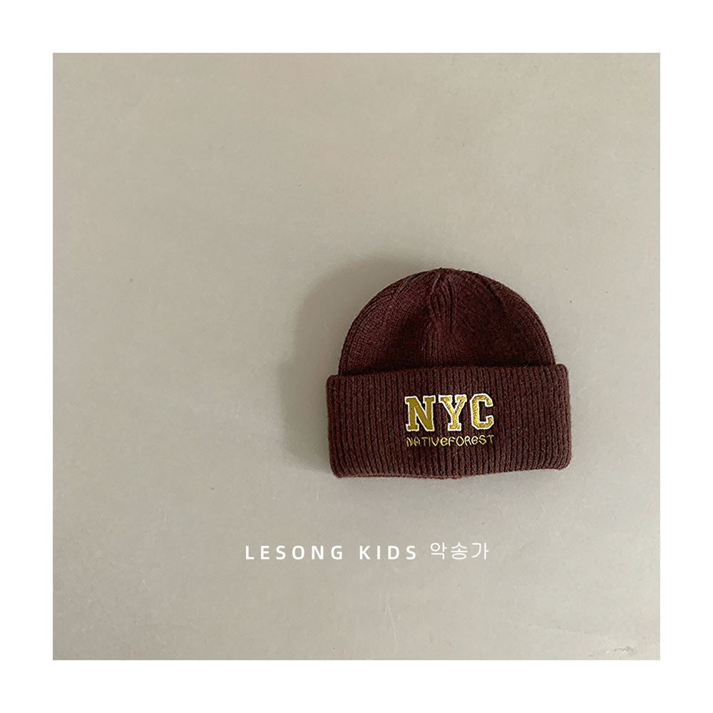 美式休闲百搭时尚字母儿童加厚针织帽