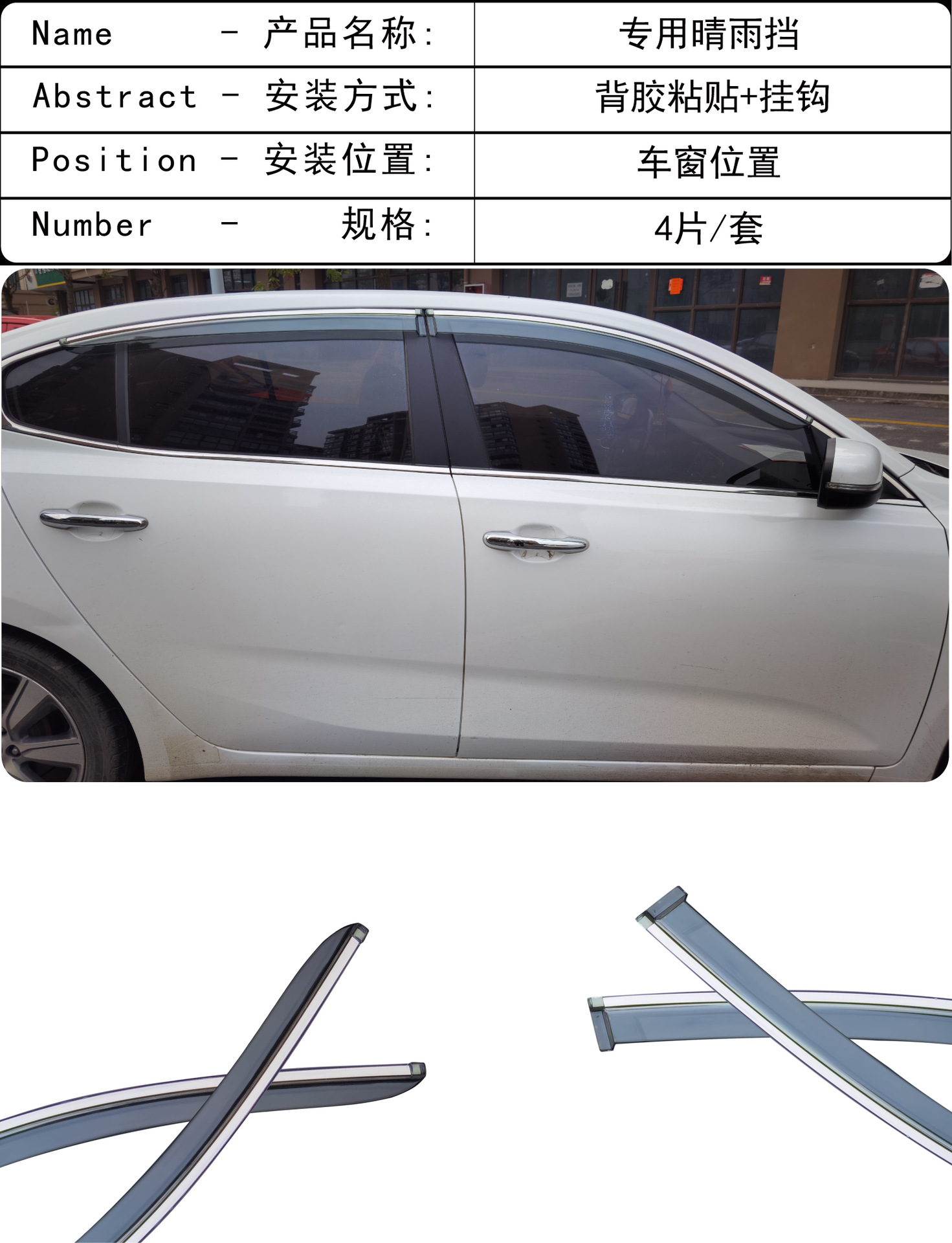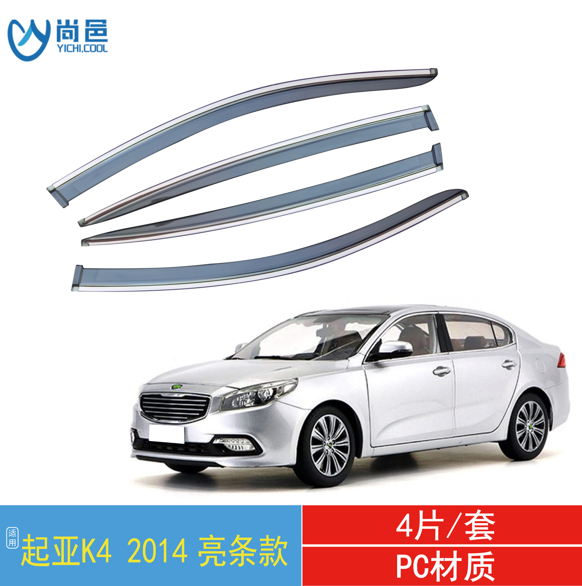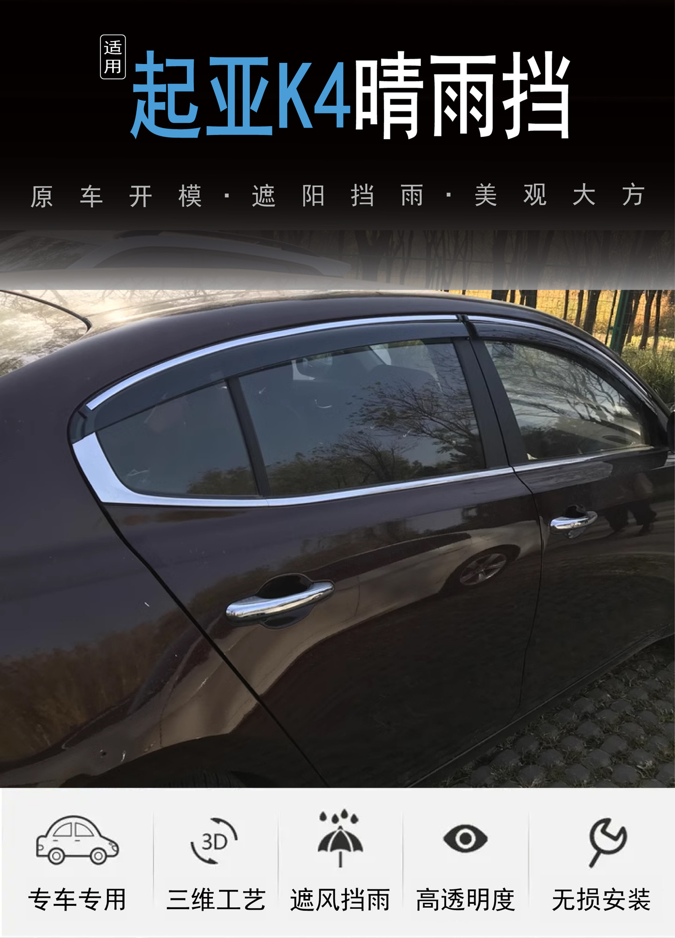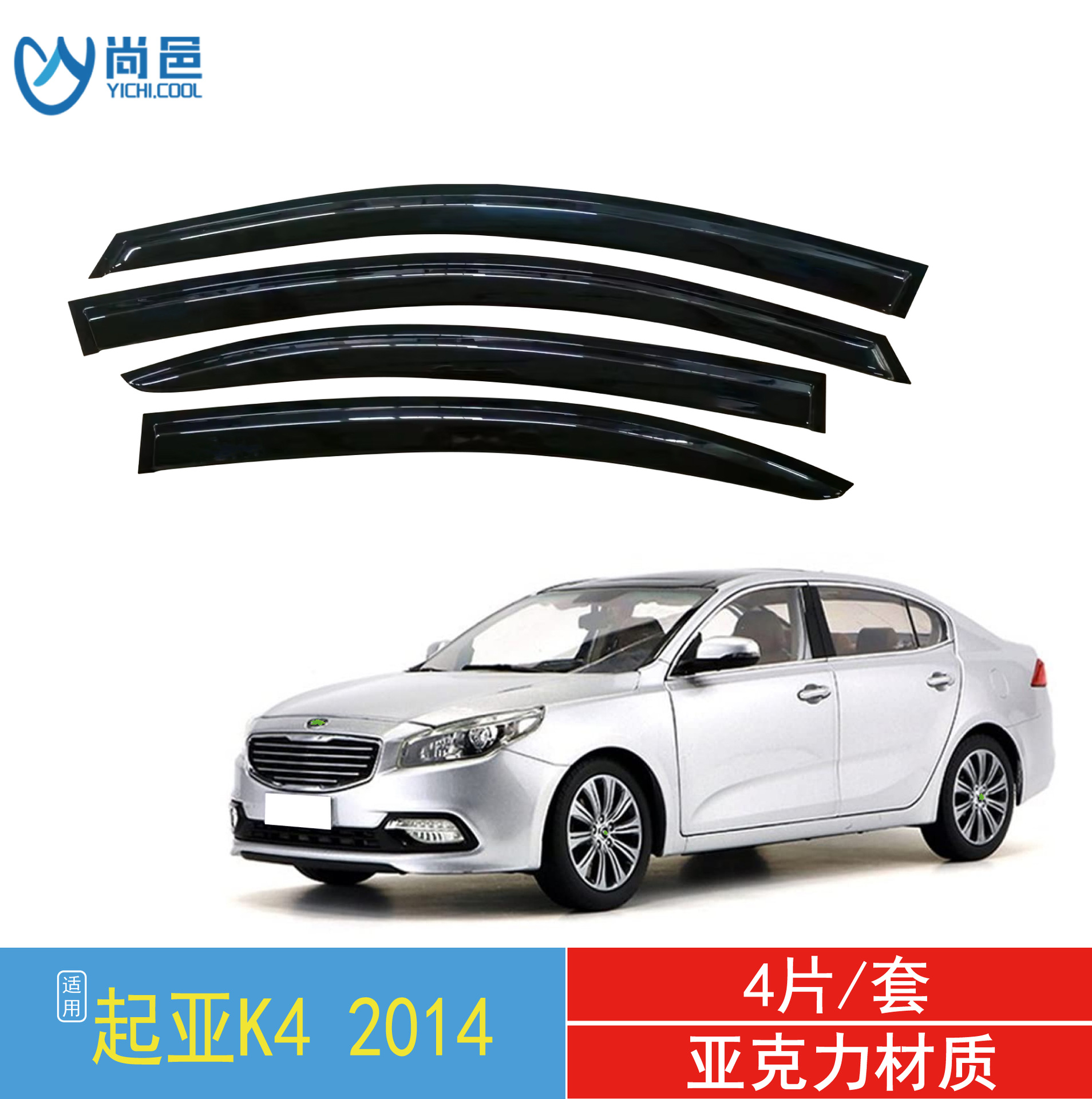 국경 간 응용 프로그램 2014 기아 K4 자동차 창 비 방패 4 조각 황갈색 아크릴 접착 자동차 방패스토어 가기