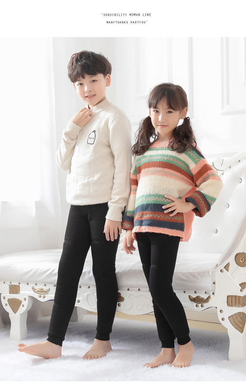 어린이 면화 바지 겨울 기모 두꺼운 소년 및 소녀 따뜻한 바지 큰 어린이 내복 레깅스 울 바지