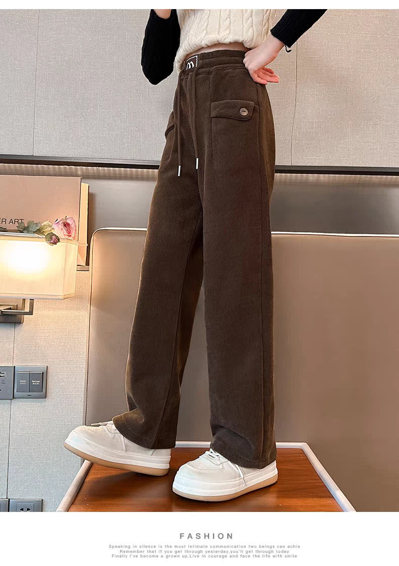 소녀 바지 기모 겨울 2024 새로운 어린이 서양식 두꺼운 넓은 다리 바지 큰 어린이 느슨한 캐주얼 스트레이트 바지스토어 가기