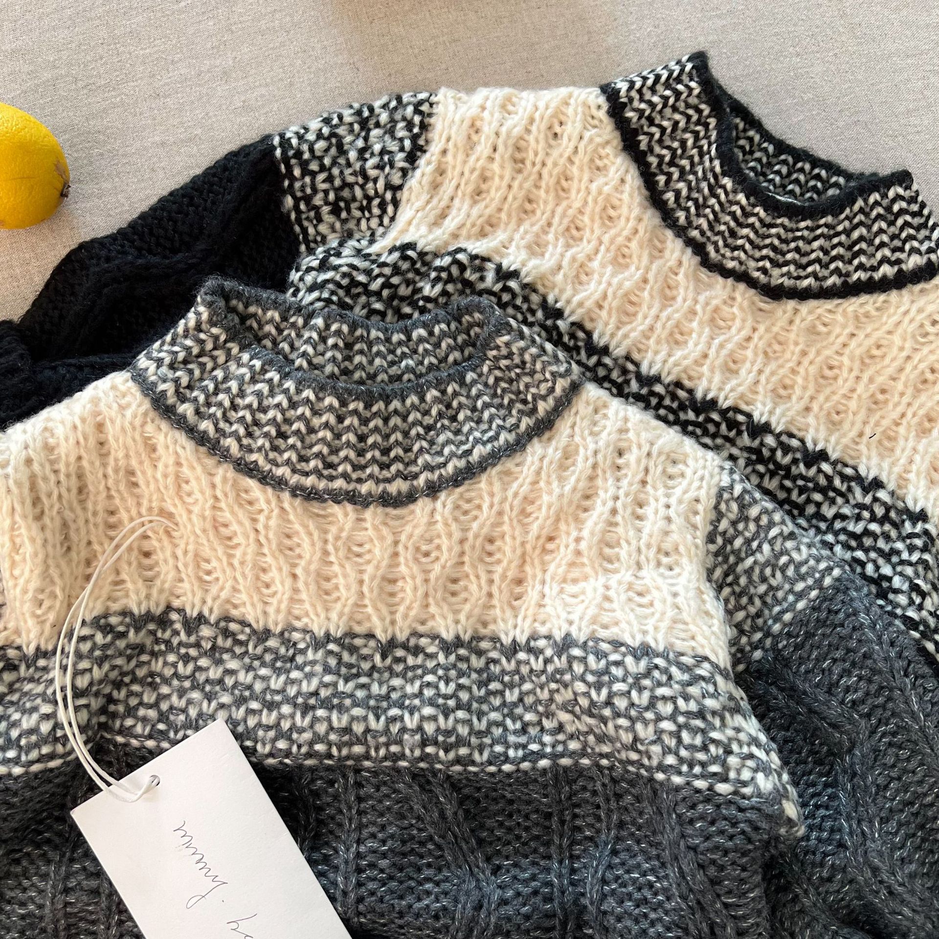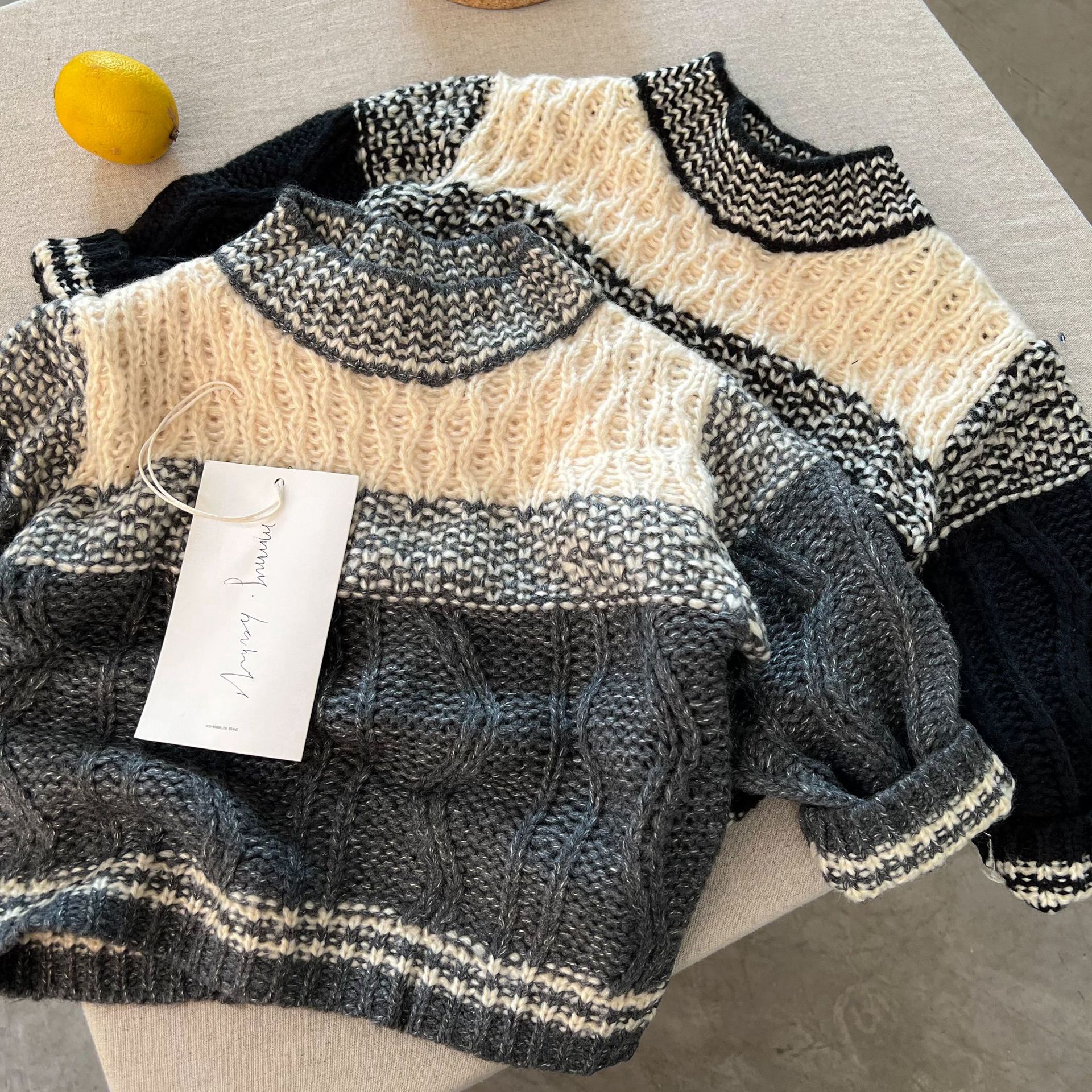 어린이 스웨터 2024 겨울 새 소년 소녀 색상 대비 니트 스웨터 아기 터틀넥 트위스트 스웨터스토어 가기
